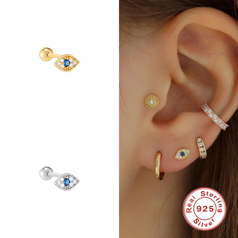 925 argento sterlina orecchino piercing, occhio cattivo, per la donna & con strass, nessuno, 8x1.20mm, Venduto da PC