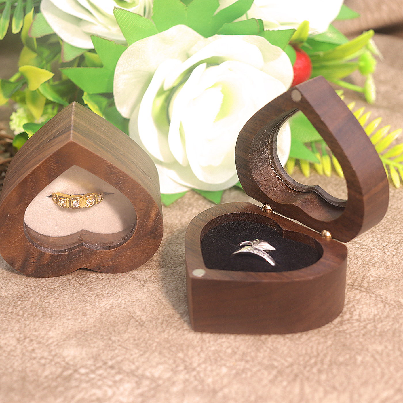 legno Anello scatola, Cuore, Antipolvere & stili diversi per la scelta, 60x55x35mm, Venduto da PC