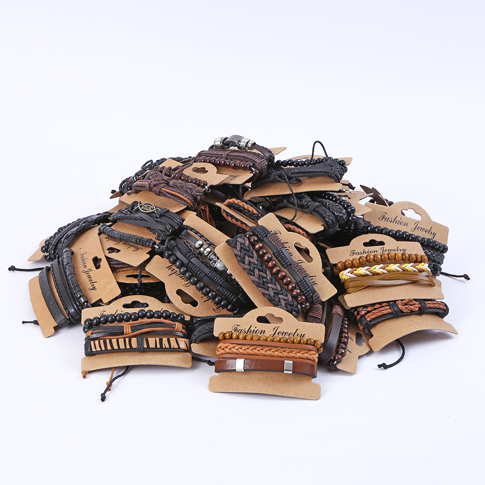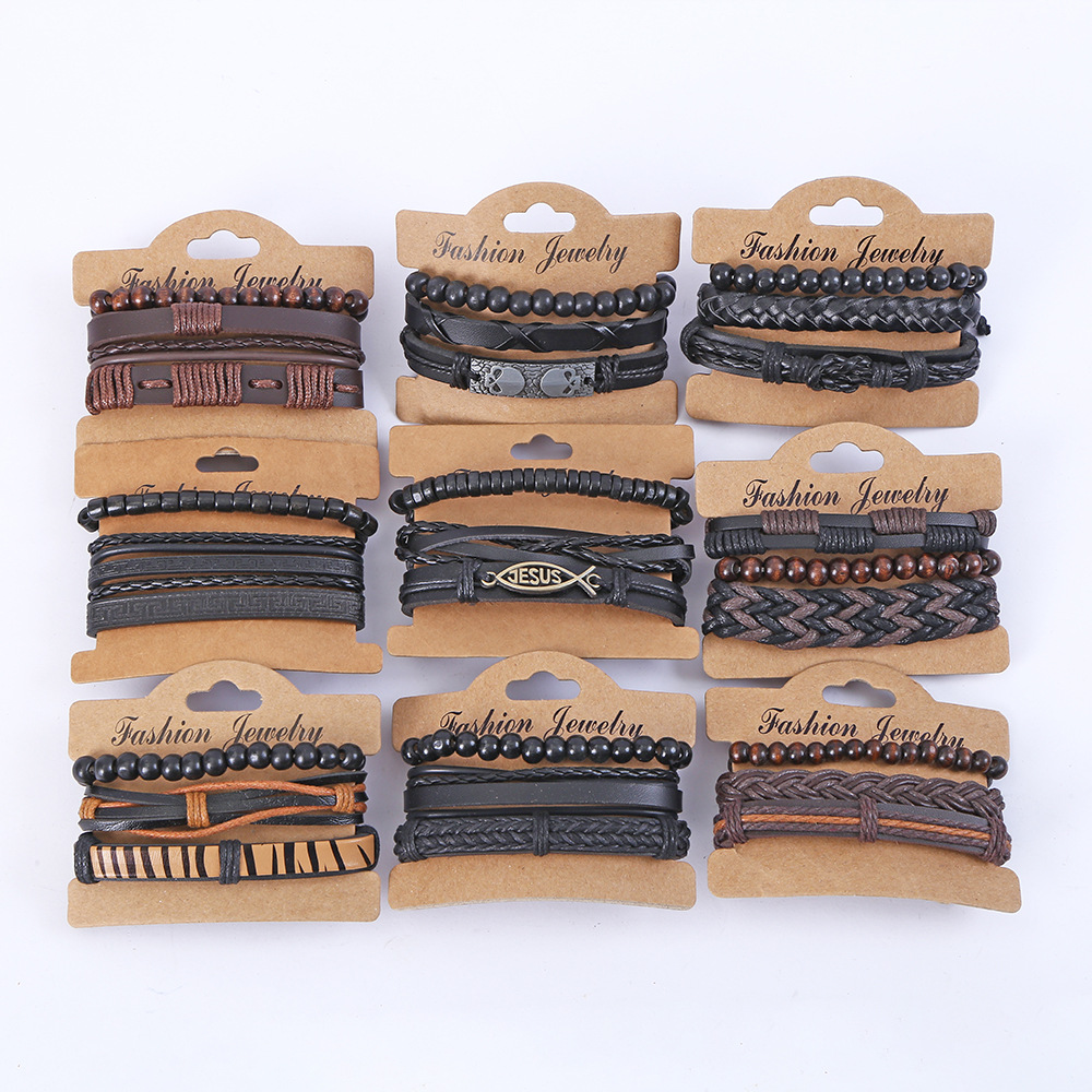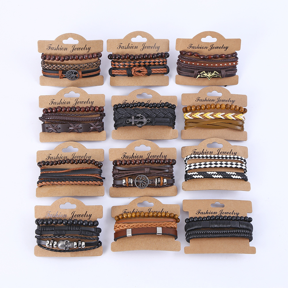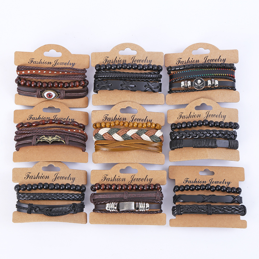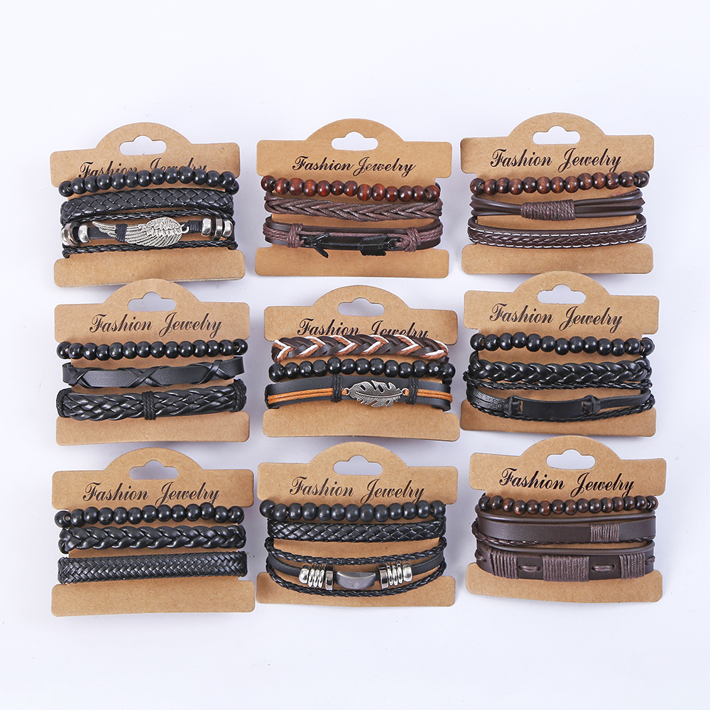 PU Bracciale Set, with Obsidian & corda di cera & legno & lega in zinco, inviato casualmente & Vintage & unisex, Lunghezza Appross. 6-10 pollice, Venduto da set