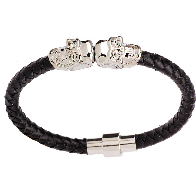 PU braccialetto, with lega in zinco, Teschio, placcato, stile punk & per l'uomo, nessuno, Lunghezza Appross. 7-9 pollice, Venduto da PC