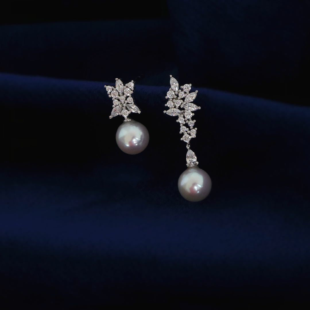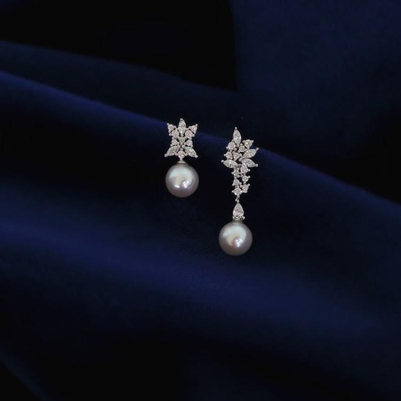 ottone Orecchini asimmetrici, with perla in plastica, placcato, per la donna & con strass, earring length 10-20mm, Venduto da coppia