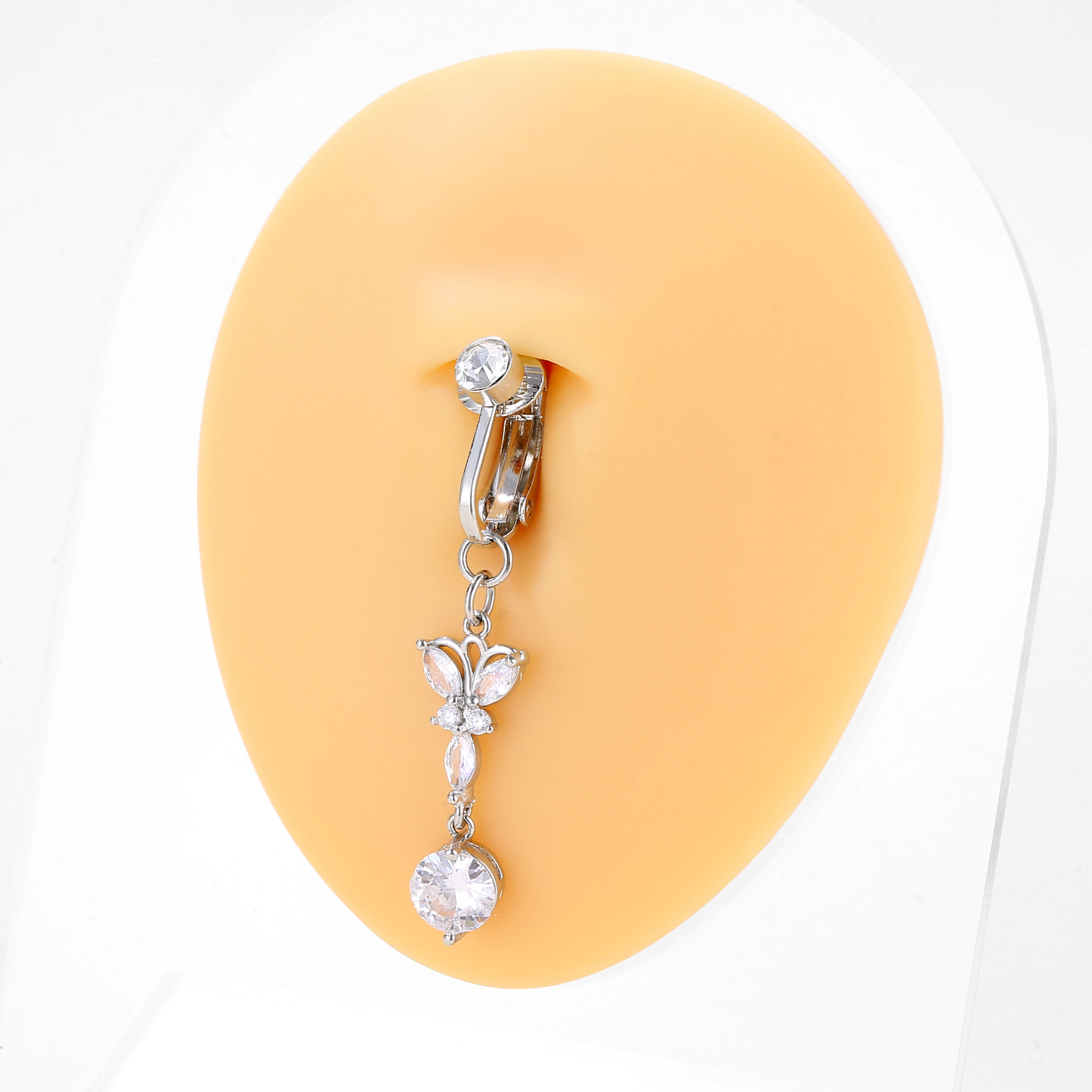 ottone anello per pancia, Farfalla, placcato, unisex & Micro spianare cubic zirconia, belly ring length 40-60mm, Venduto da PC