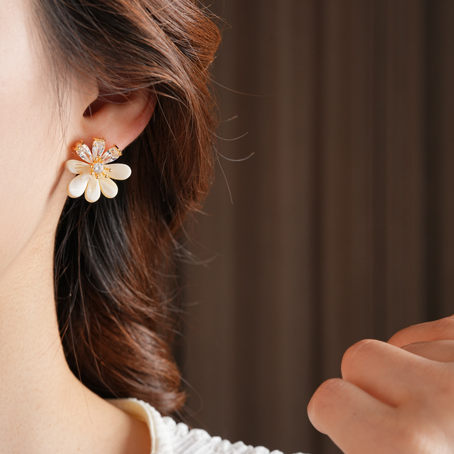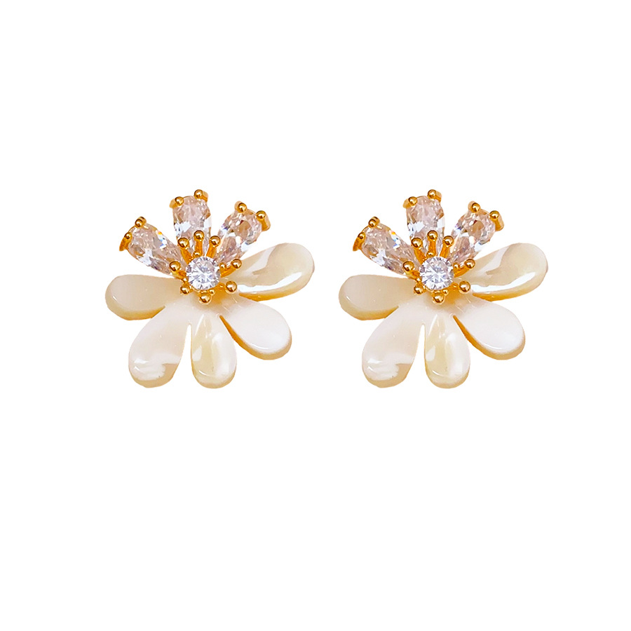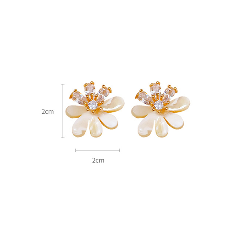 ottone orecchini a borchia, with resina, Fiore, placcato color oro, Micro spianare cubic zirconia & per la donna, 20x20mm, Venduto da coppia