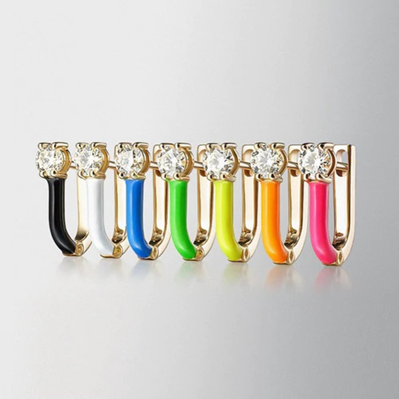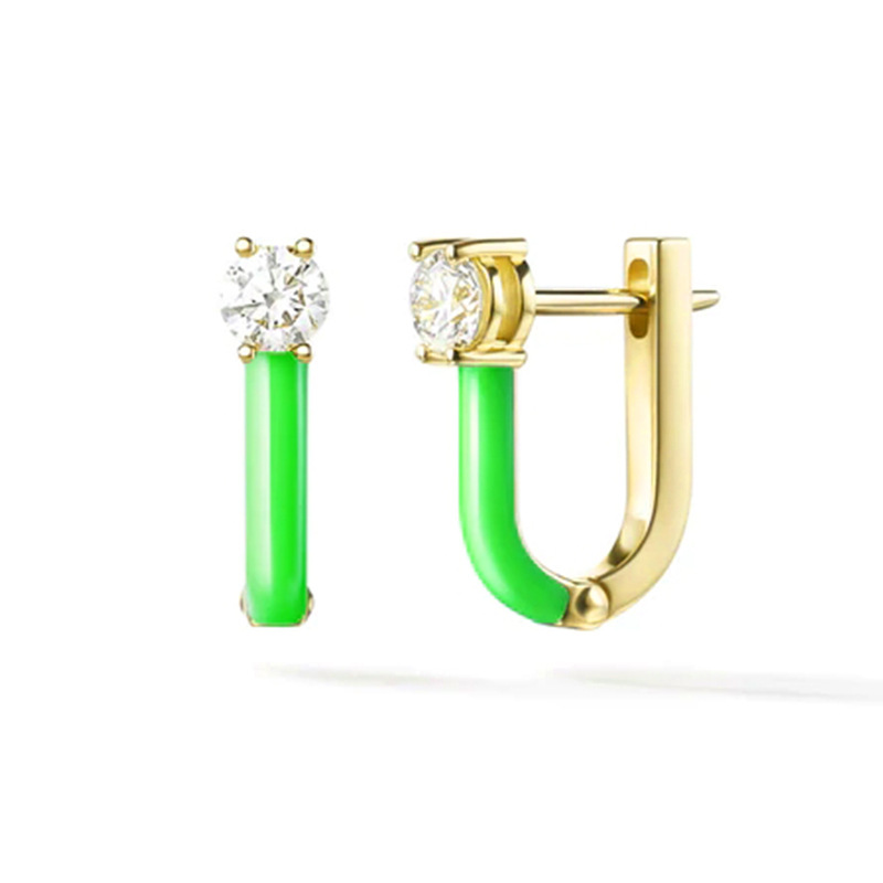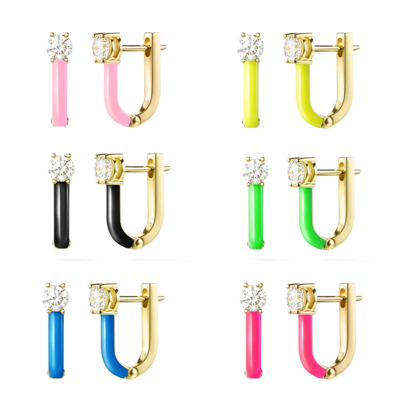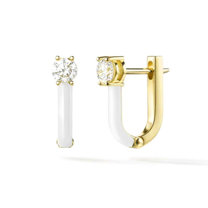 ottone orecchino a sostegno, Lettera U, placcato color oro, per la donna & smalto & con strass, nessuno, 13x15mm, Venduto da coppia