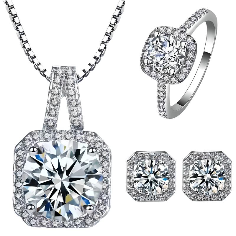 1:White diamond ring [adjustable opening]2:earring3:necklace 18inch