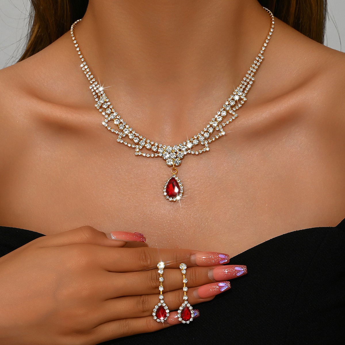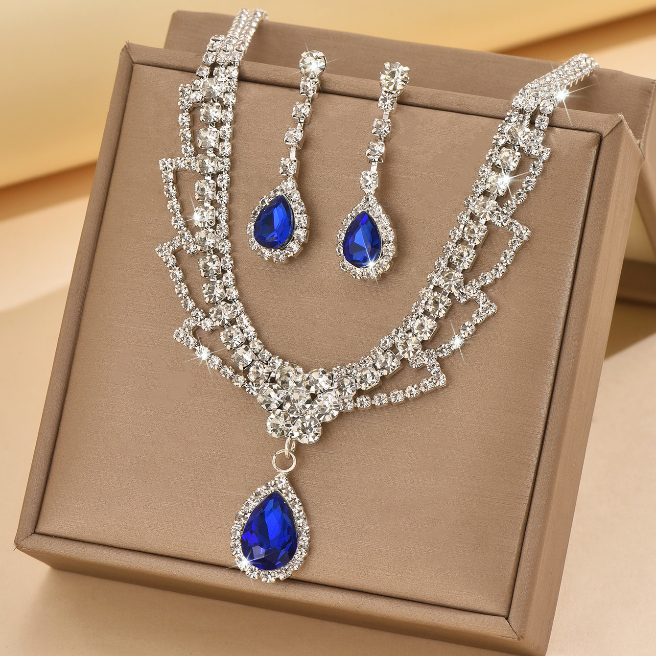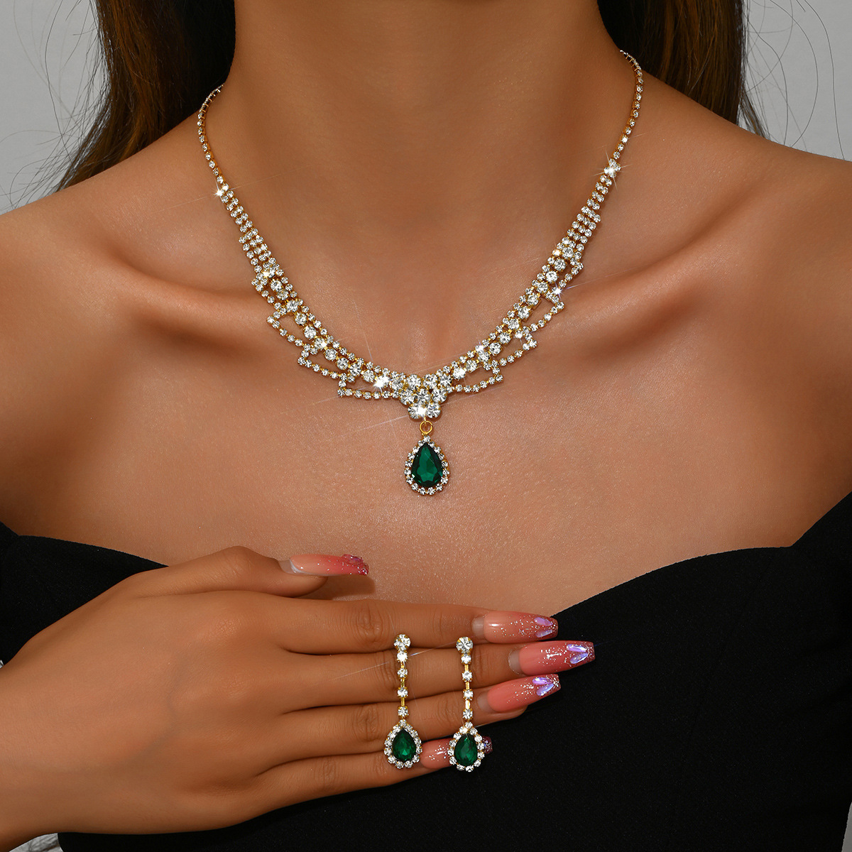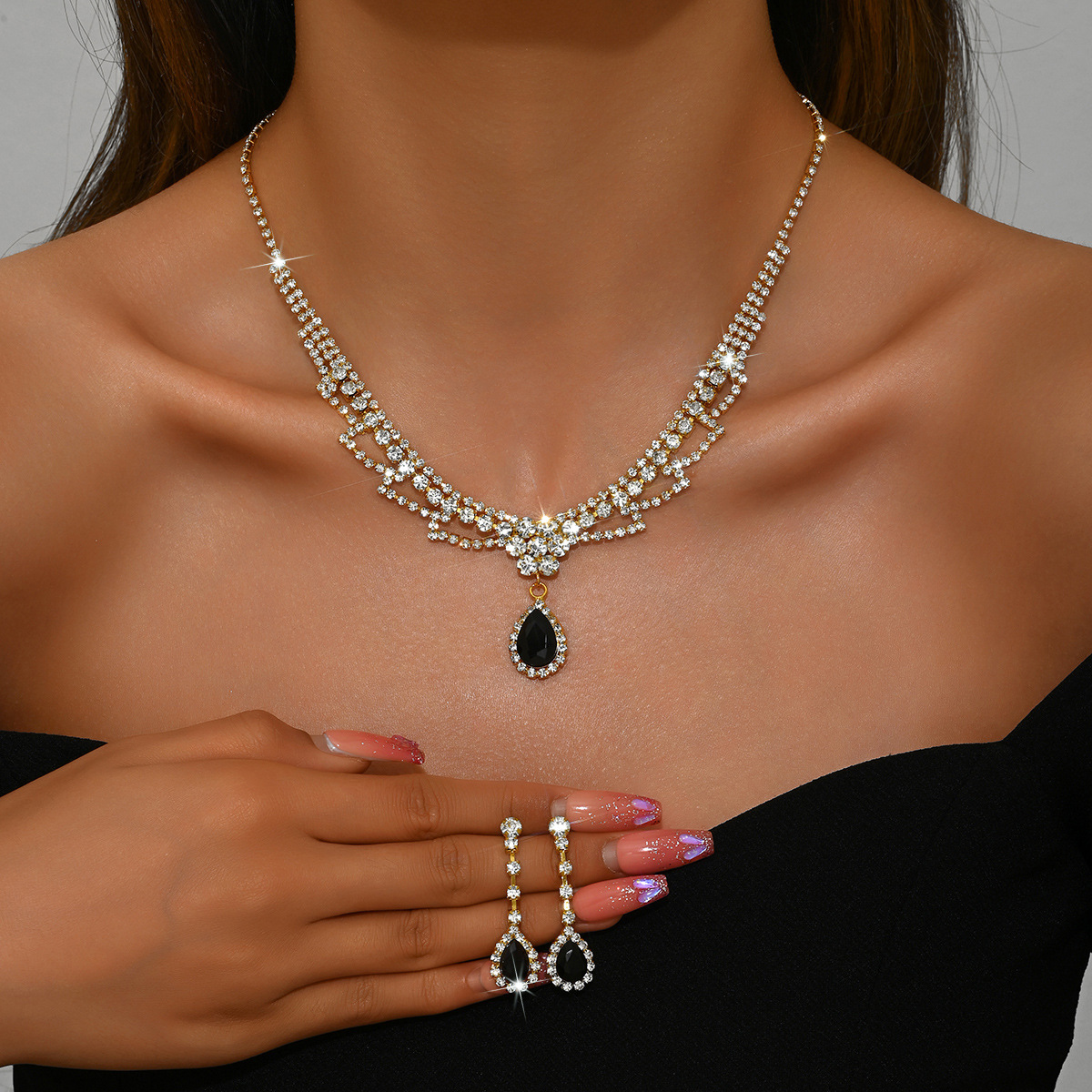 ottone set di gioielli fashion, orecchino & Collana, placcato, 2 pezzi & per la donna & con strass, nessuno, Venduto da set