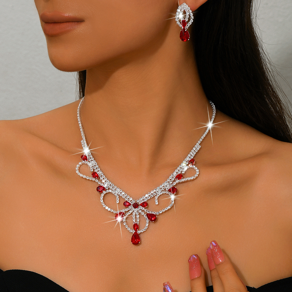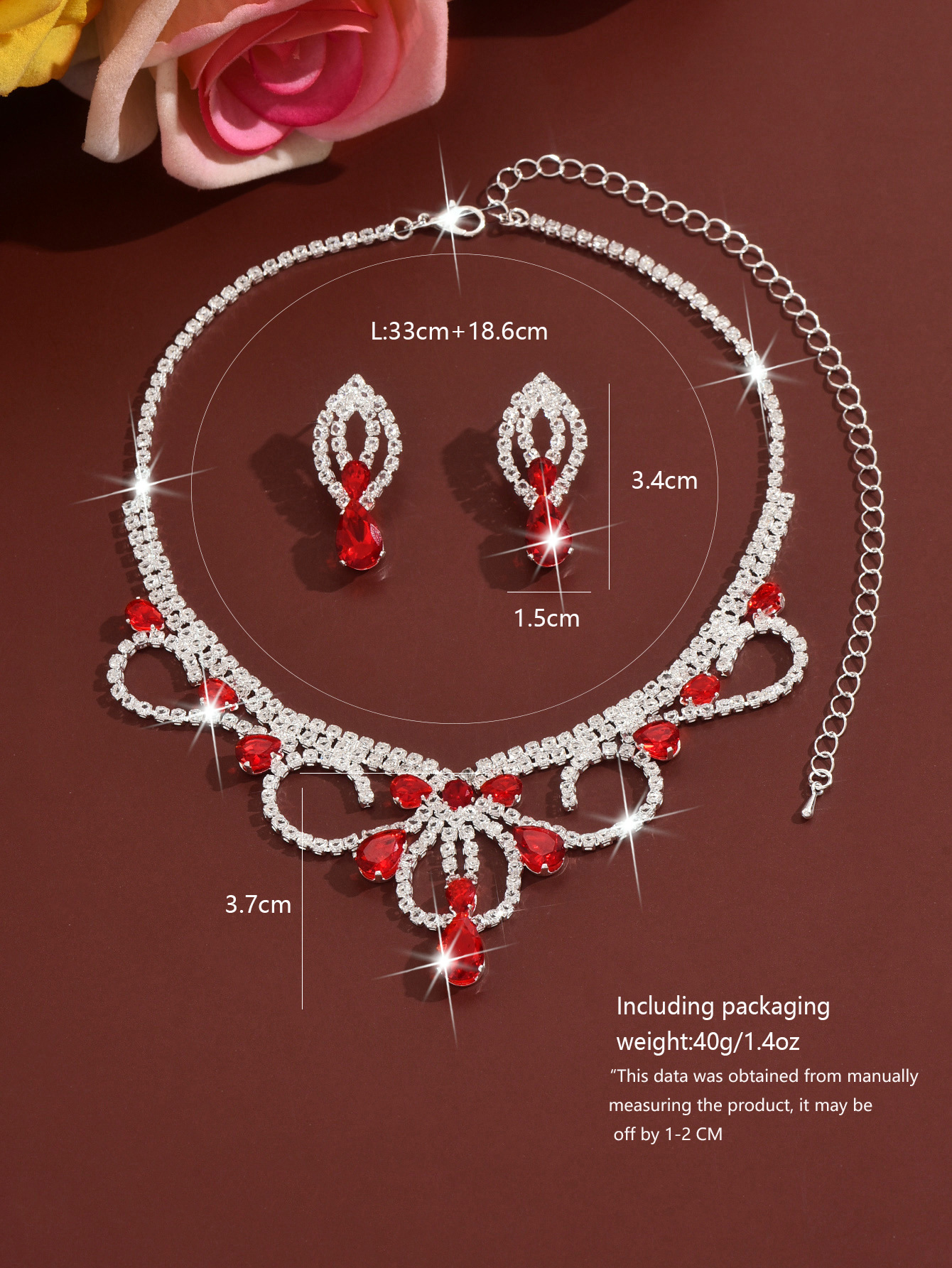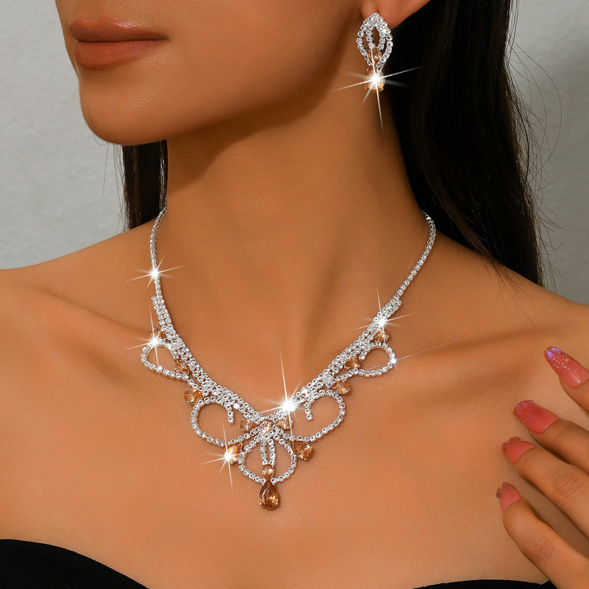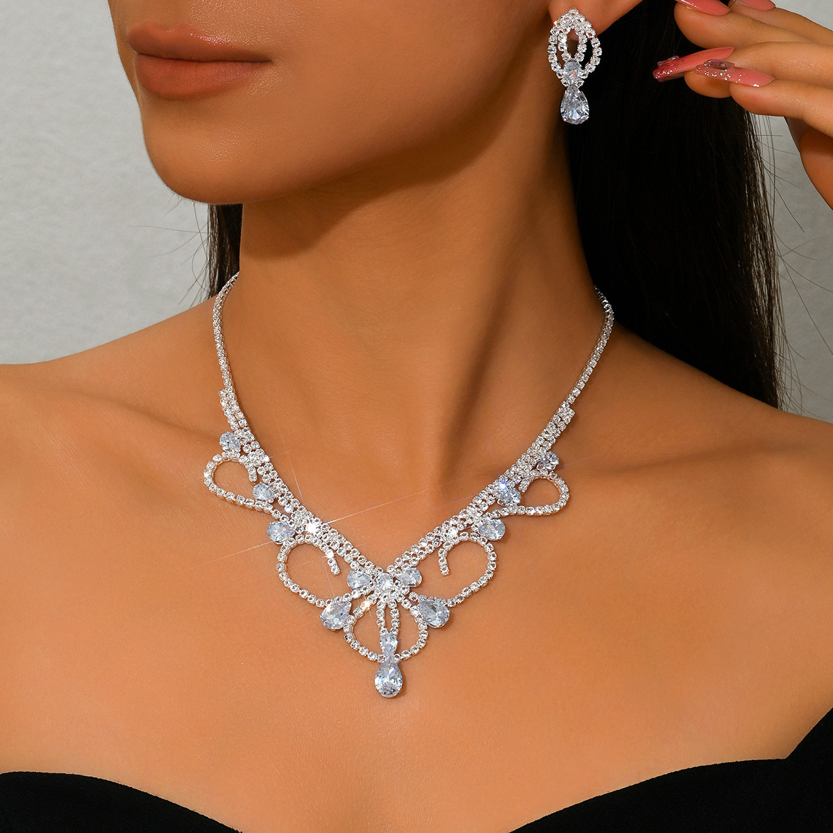 ottone set di gioielli fashion, orecchino & Collana, placcato color argento, 2 pezzi & per la donna & con strass, nessuno, Venduto da set