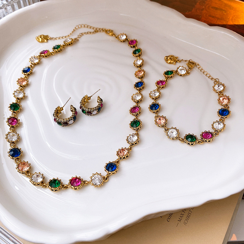 ottone set di gioielli fashion, placcato color oro, stili diversi per la scelta & per la donna & con strass, Venduto da PC