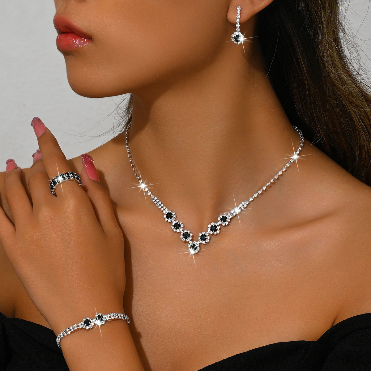 1:A/ black suit2:B/ red suit3:C/ royal blue suit4:D/ silver suit5:E/ silver white necklace earrings bracelet set6:F/ red necklace earrings bracelet set7:G/ black necklace earrings bracelet set8:H/ green necklace earrings bracelet set9:I/ silver white necklace and earrings two-piece set10:J/ red necklace earrings11:K/ green necklace earrings12:L/ black necklace earrings