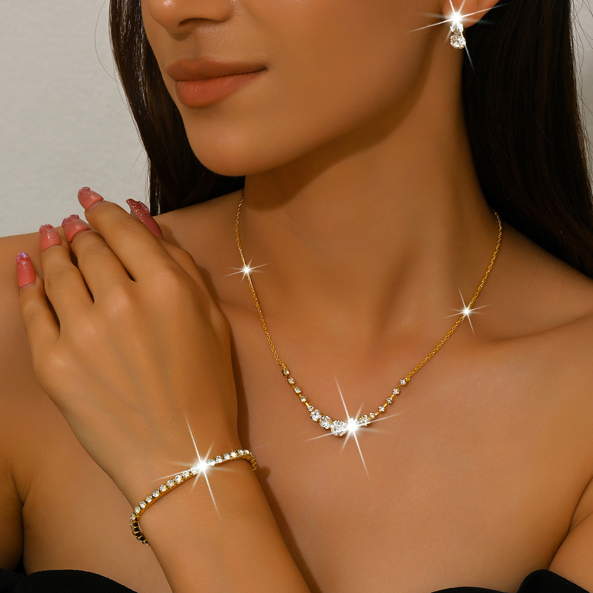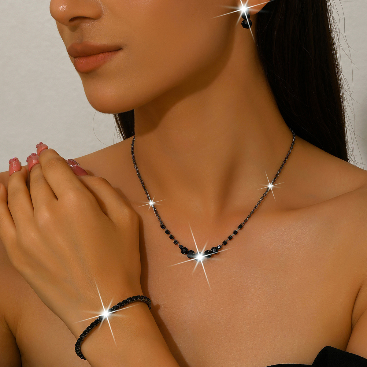 1:silver necklace earrings2:gold necklace earrings3:black necklace earrings4:silver suit5:gold suit6:black suit