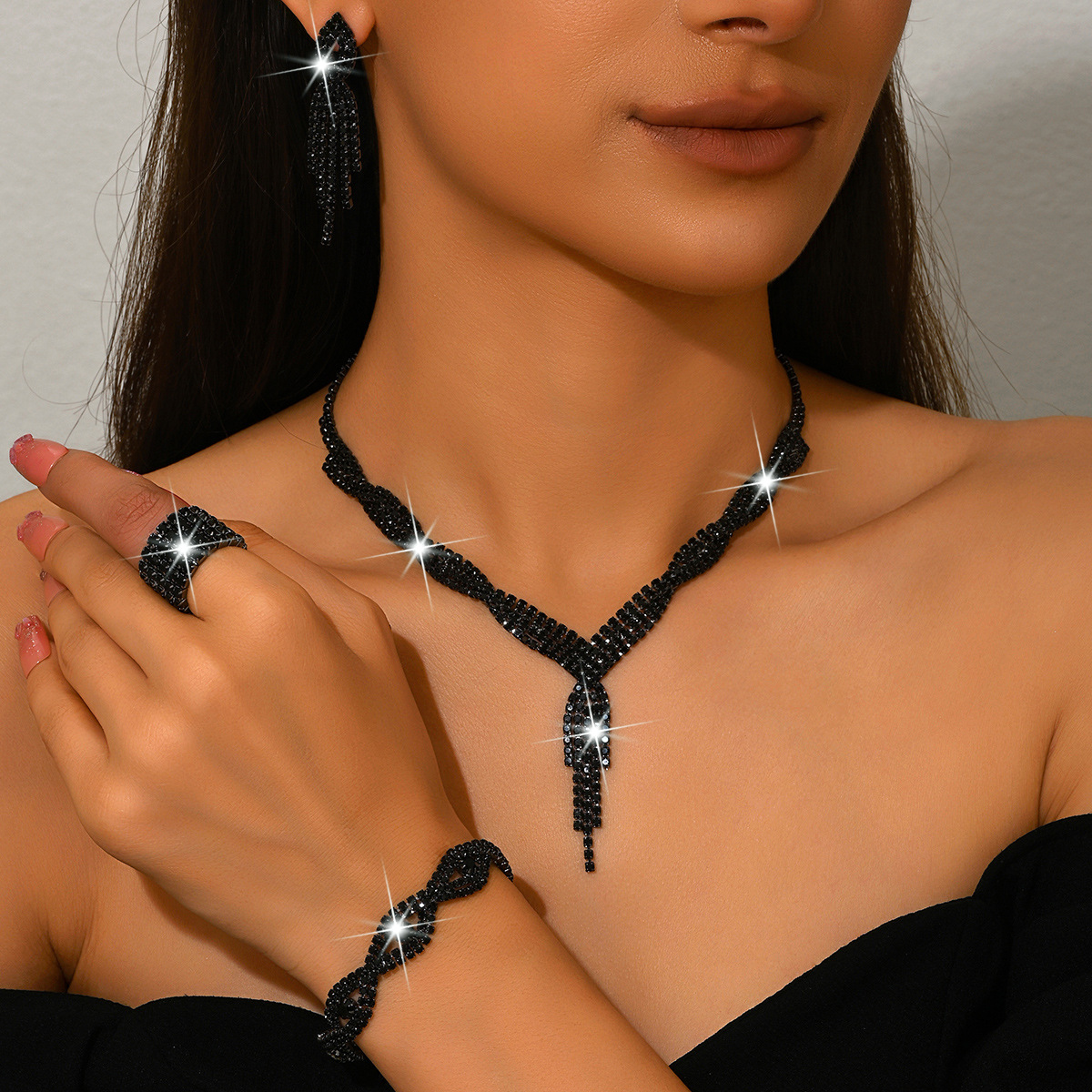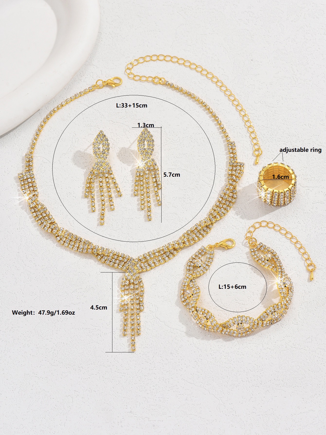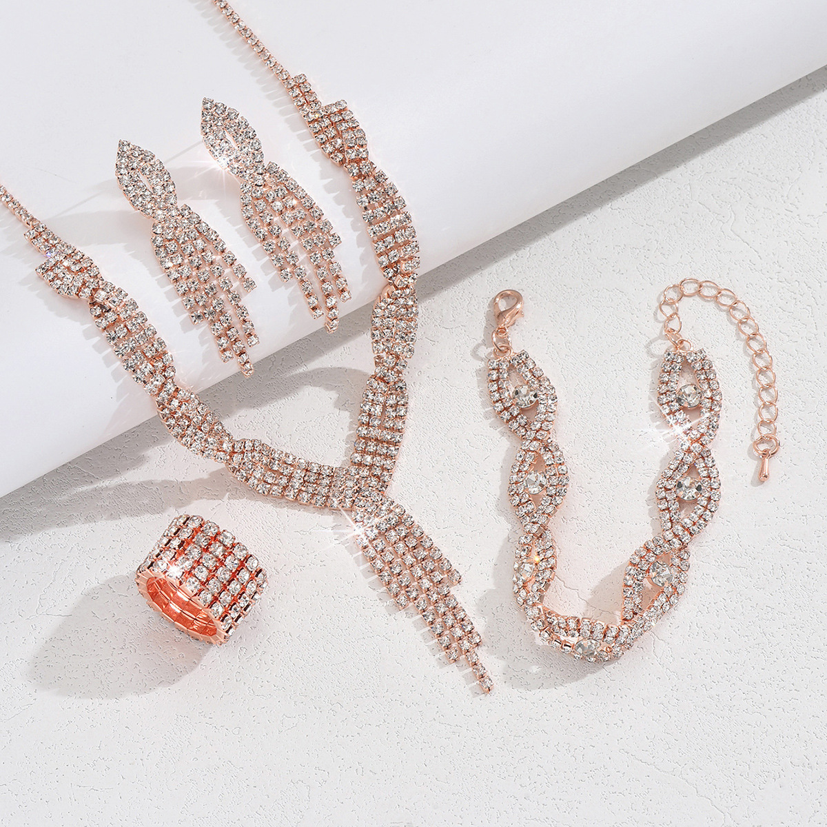 ottone set di gioielli fashion, anello dito & Bracciale & orecchino & Collana, placcato, 4 pezzi & per la donna & con strass, nessuno, Venduto da set
