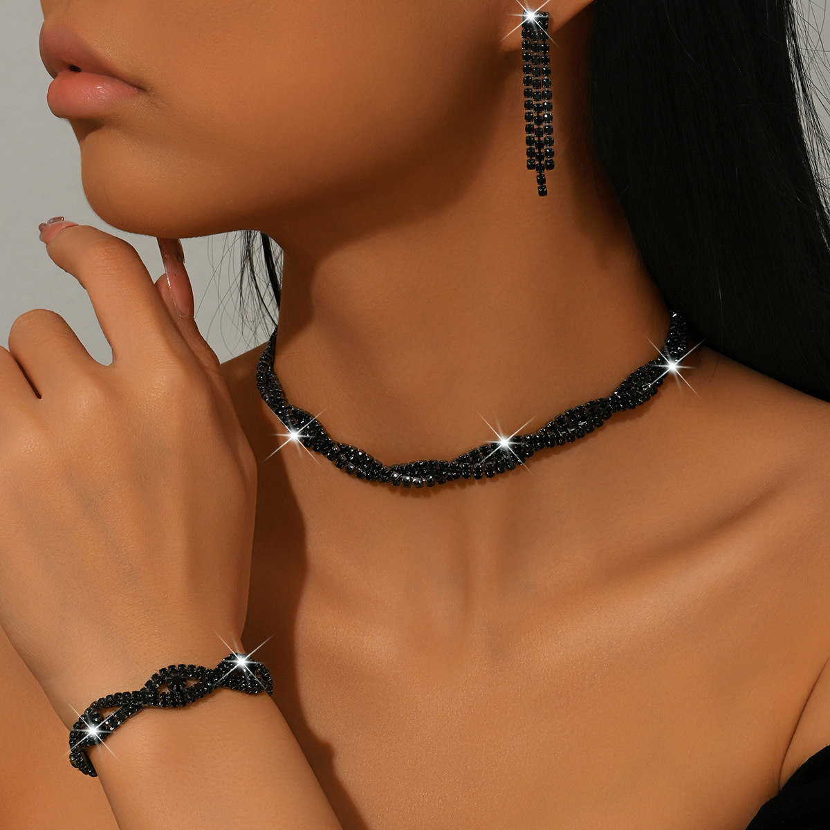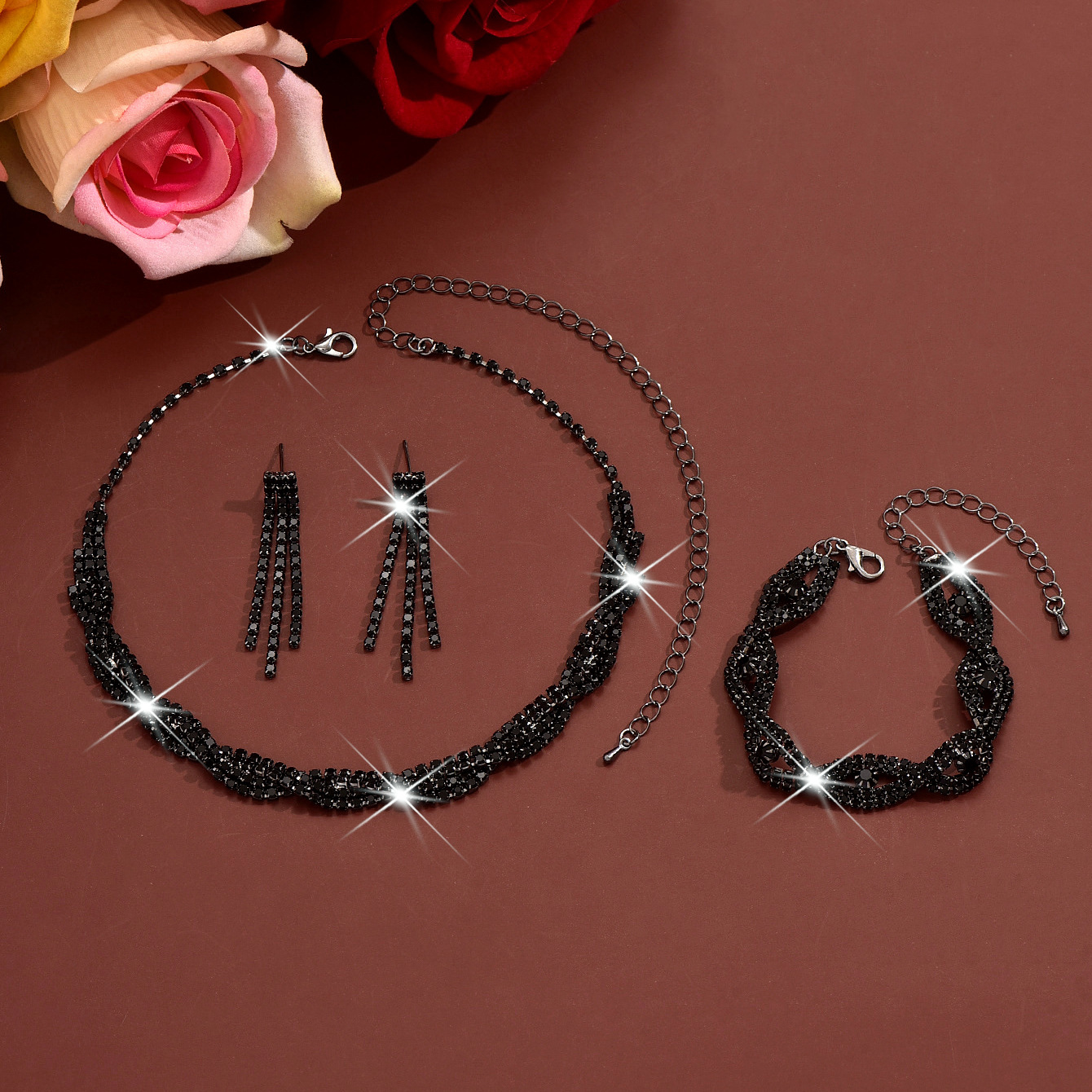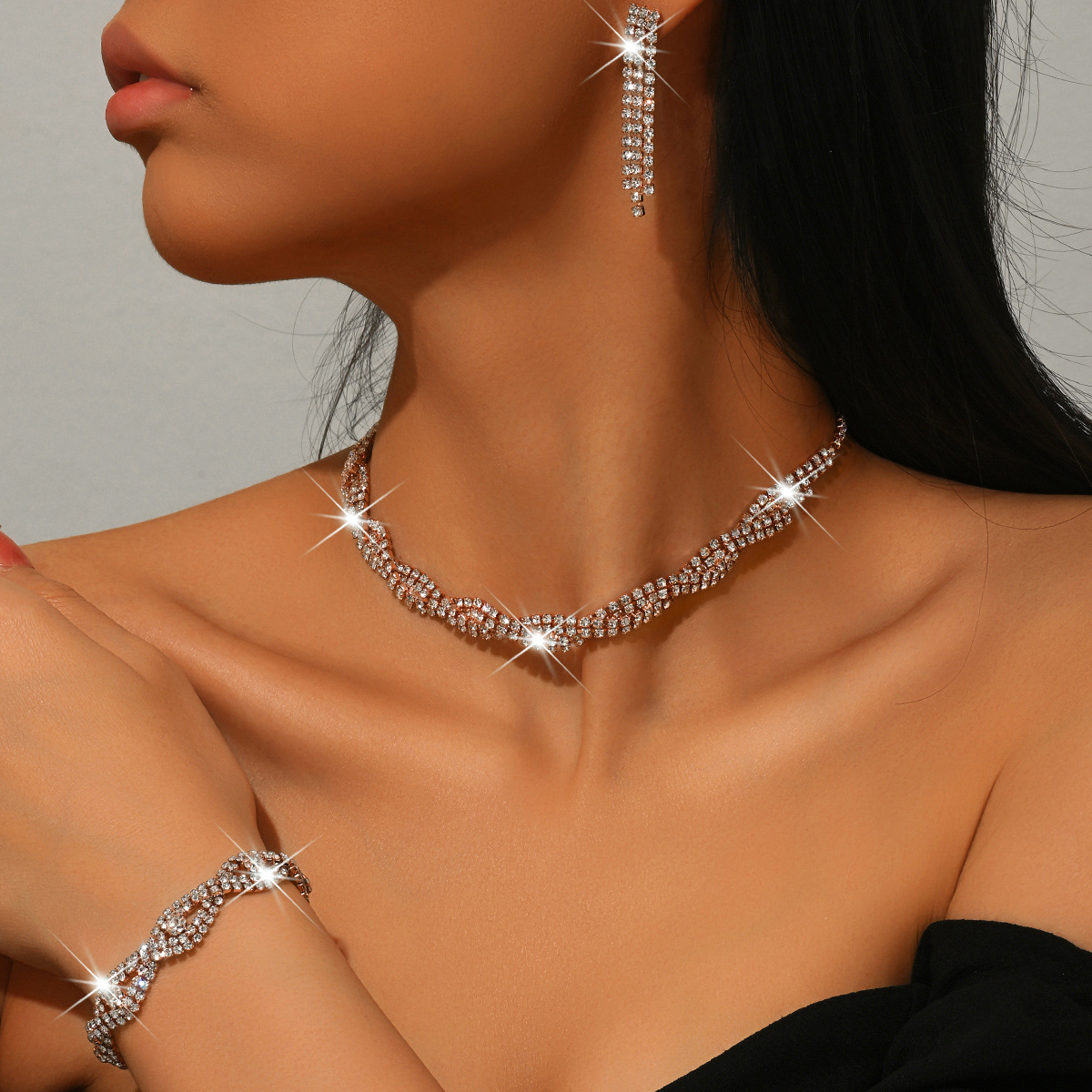 ottone set di gioielli fashion, placcato, stili diversi per la scelta & per la donna & con strass, Venduto da set