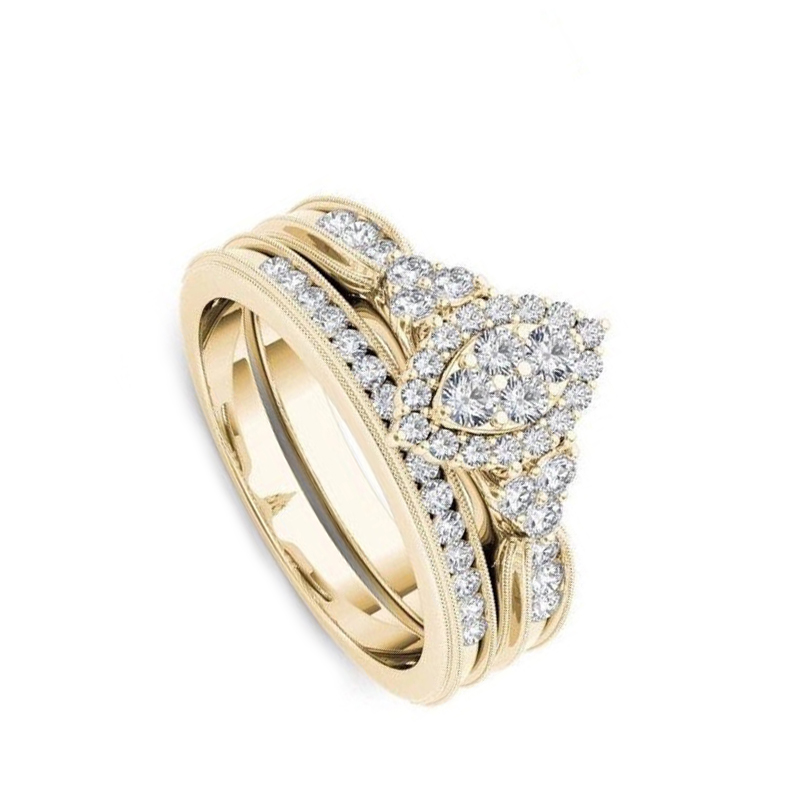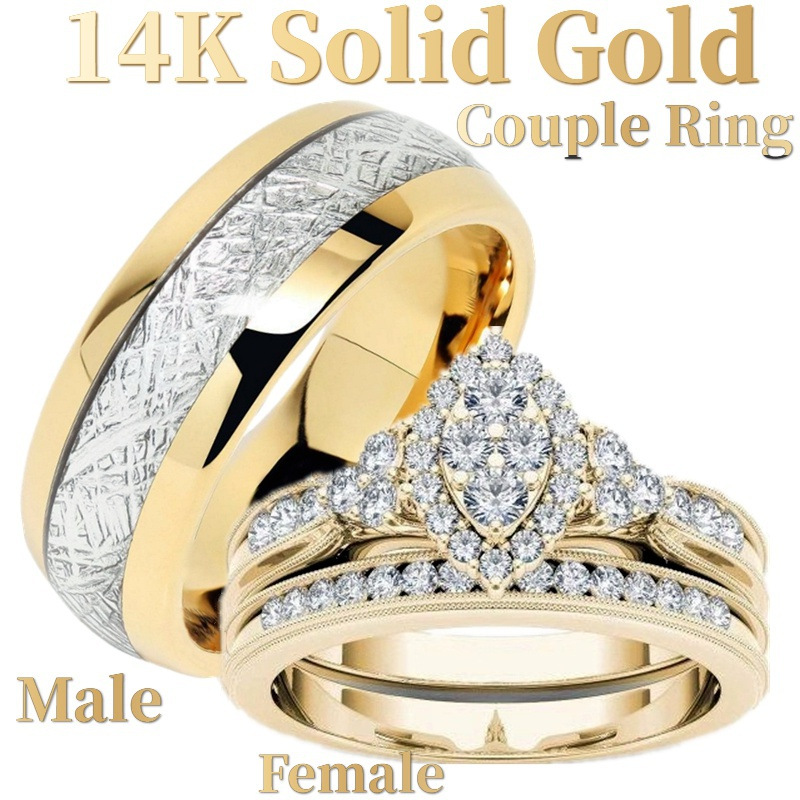 lega in zinco Anello di coppia, placcato color oro, formato differente per scelta & stili diversi per la scelta & Micro spianare cubic zirconia & per coppia, Misura:6-11, Venduto da PC