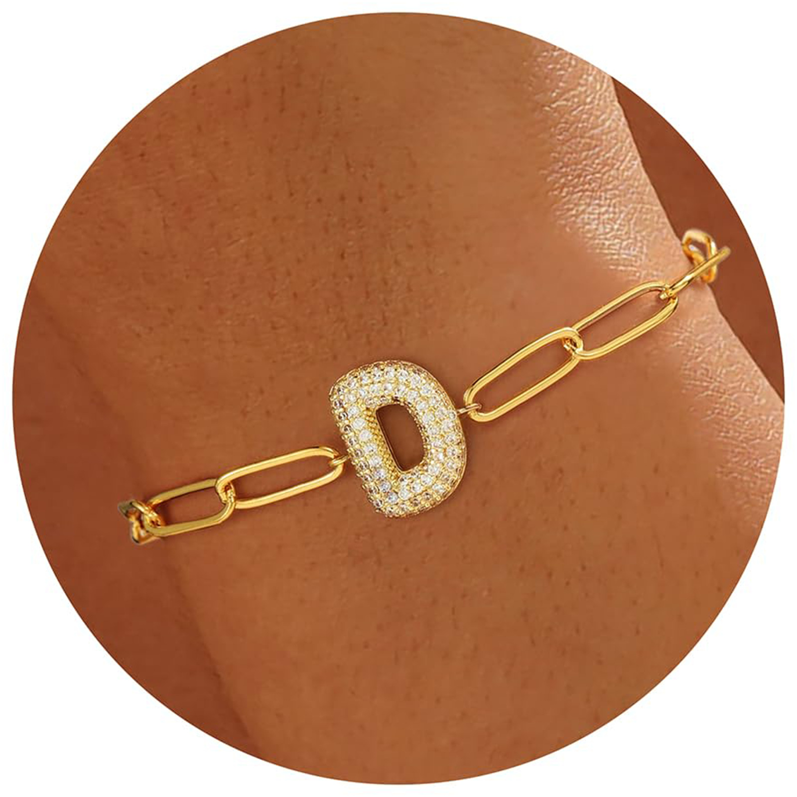 lega in zinco braccialetto, Lettera alfabeto, placcato color oro, stili diversi per la scelta & per la donna & con strass, Lunghezza Appross. 6-8 pollice, Venduto da PC