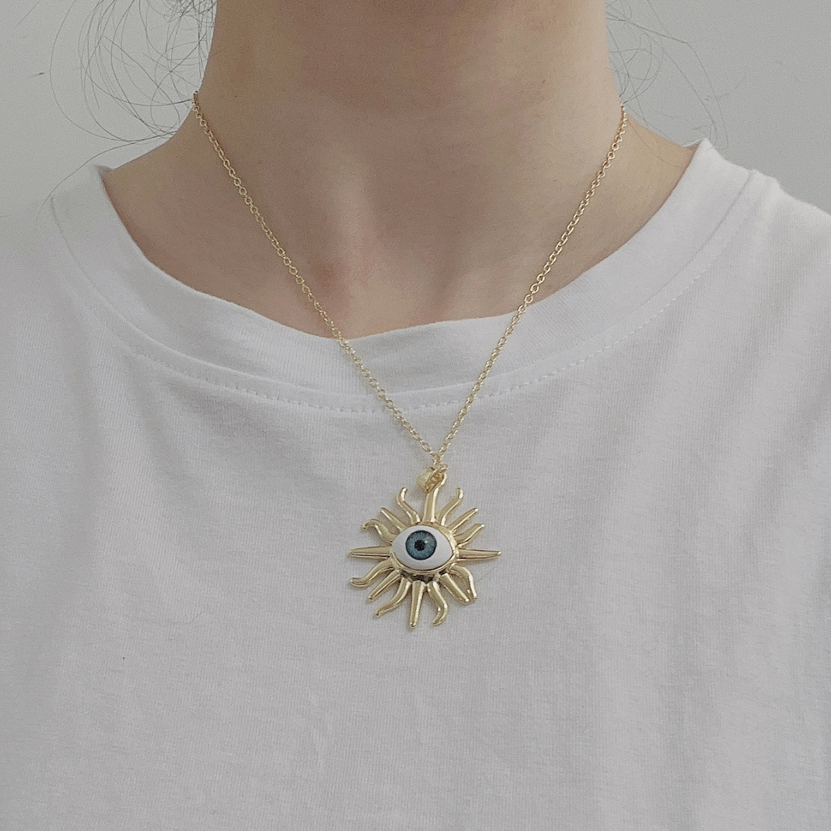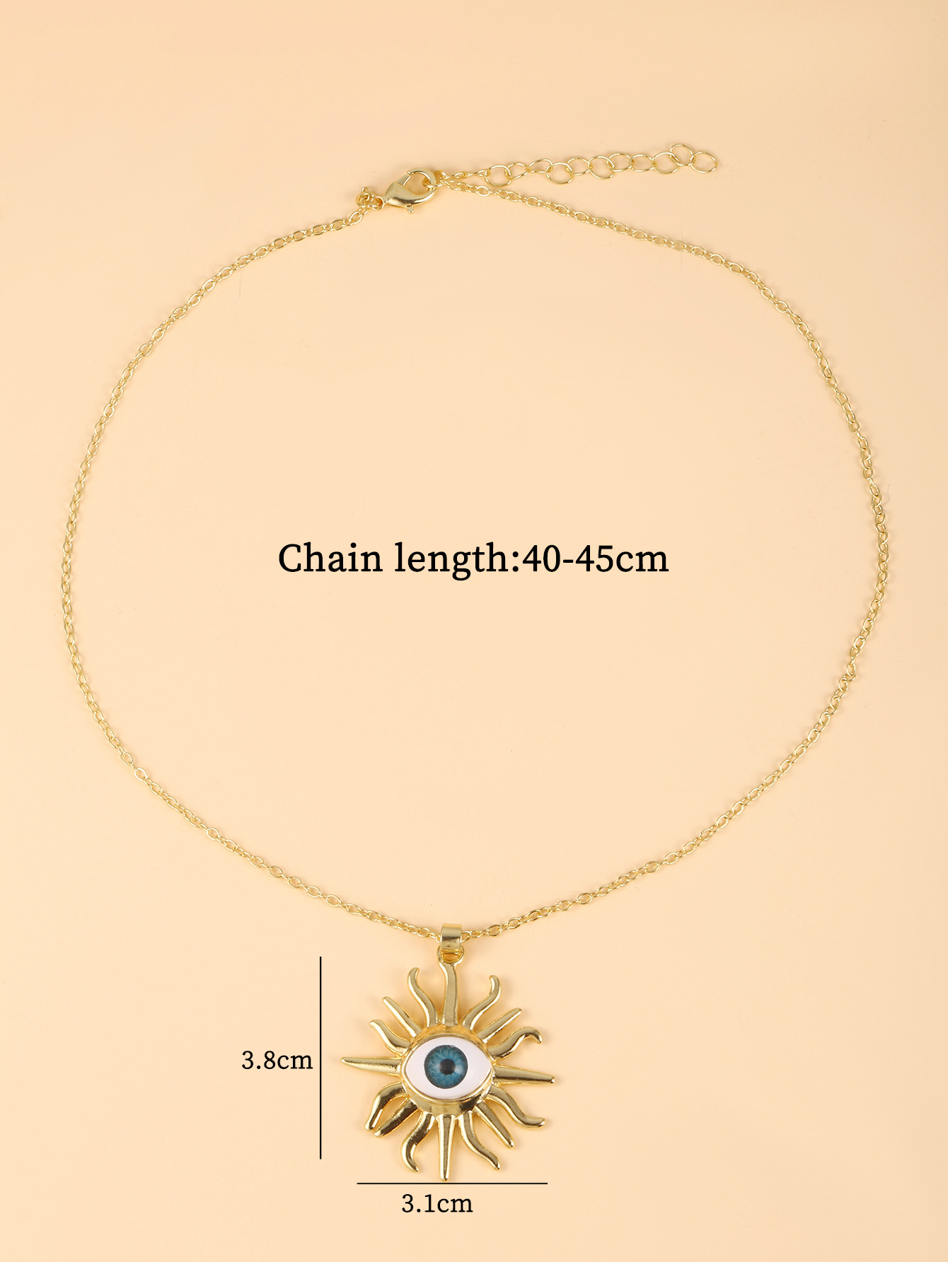 lega in zinco collana, with 5cm extender chain, occhio, placcato color oro, gioielli di moda & unisex, pendant size 38x31mm, Lunghezza Appross. 40 cm, Venduto da PC