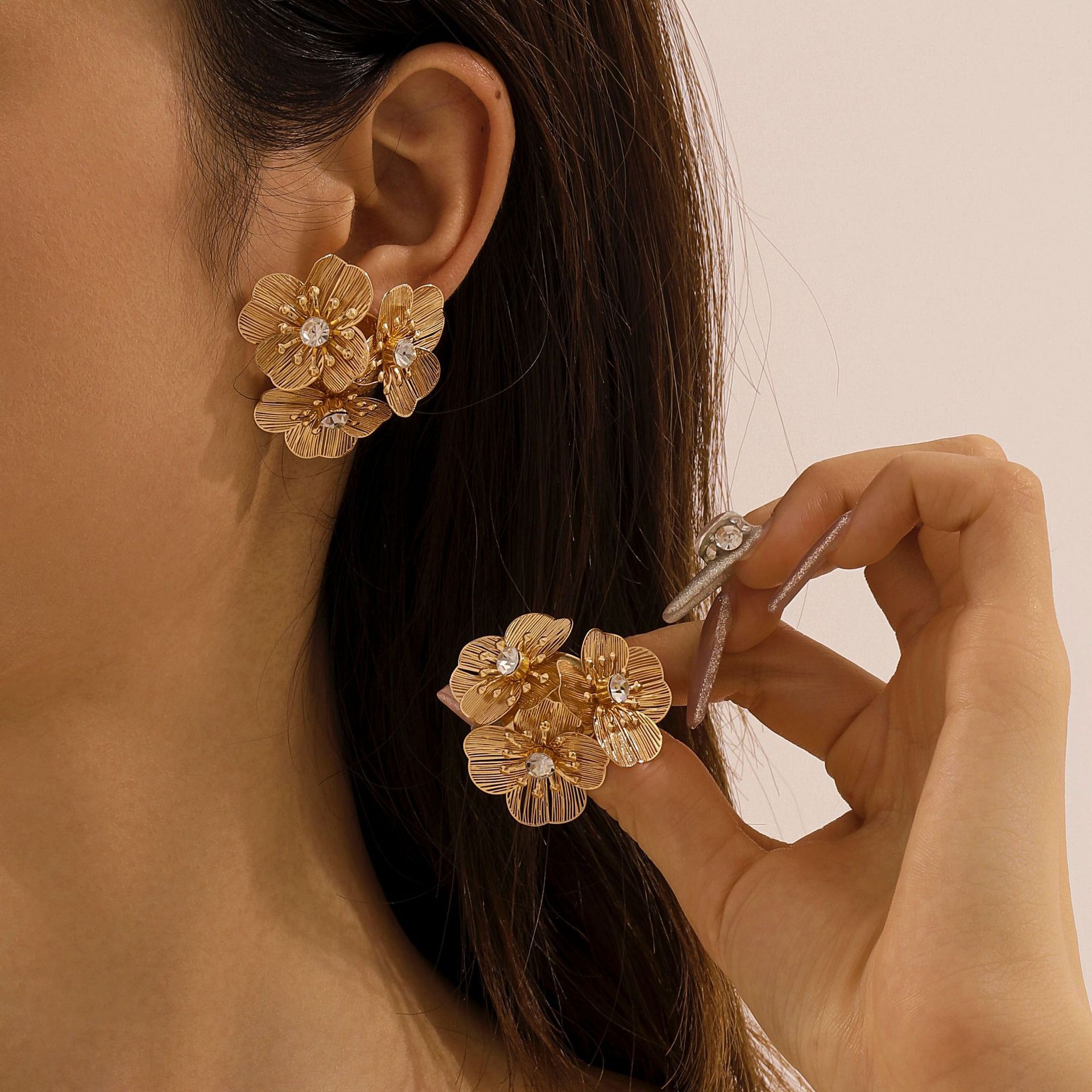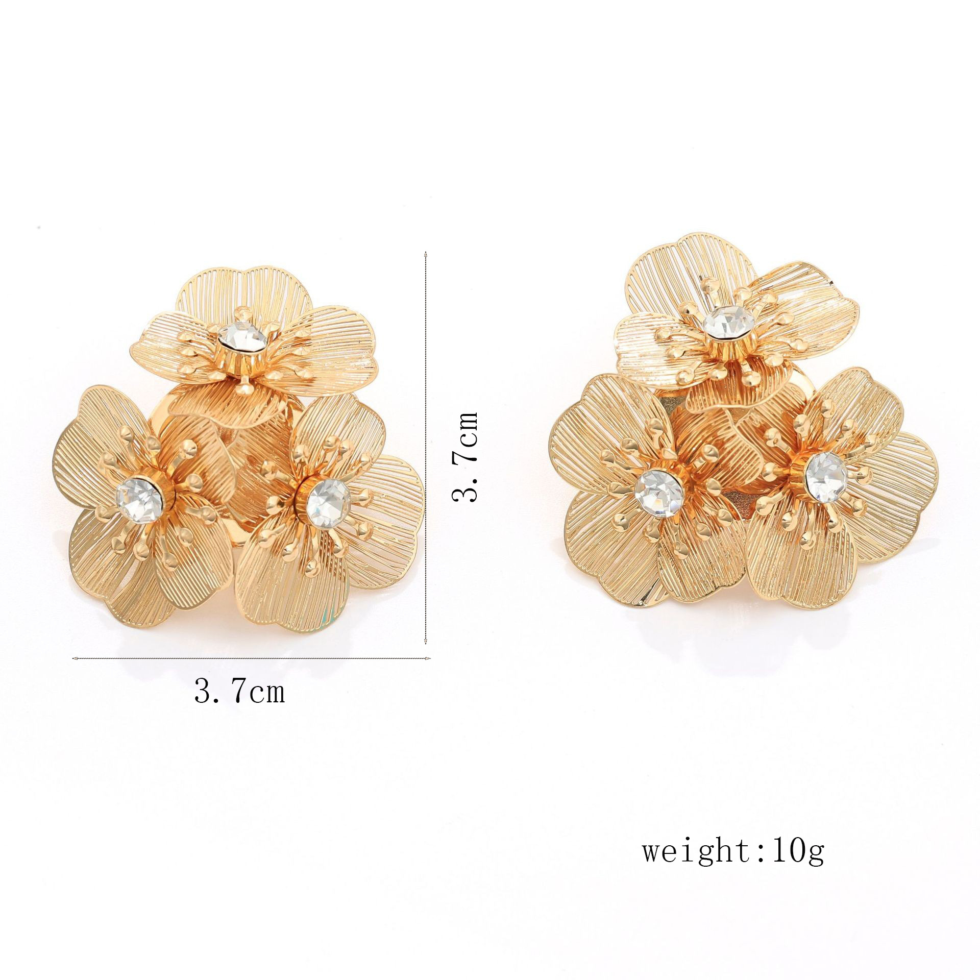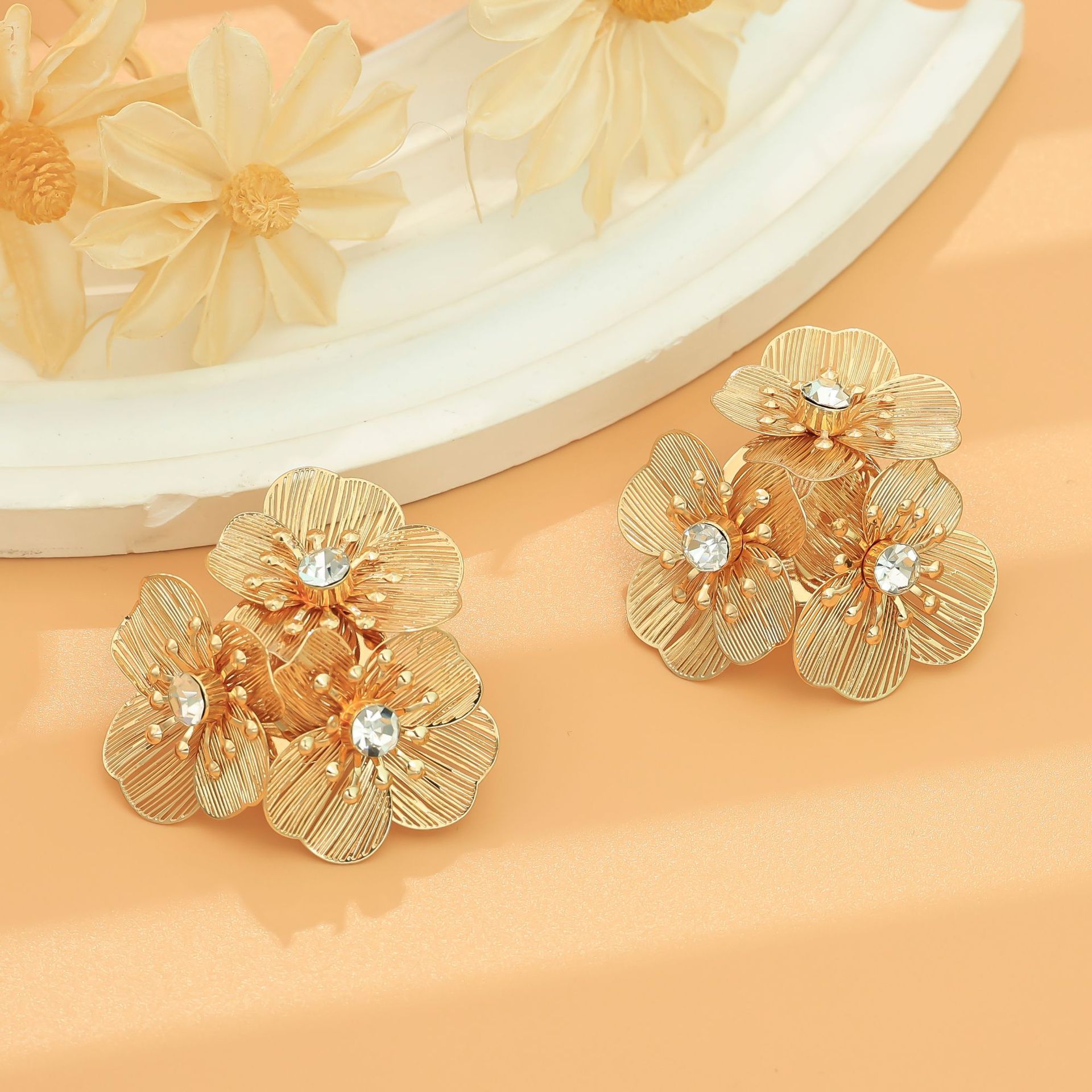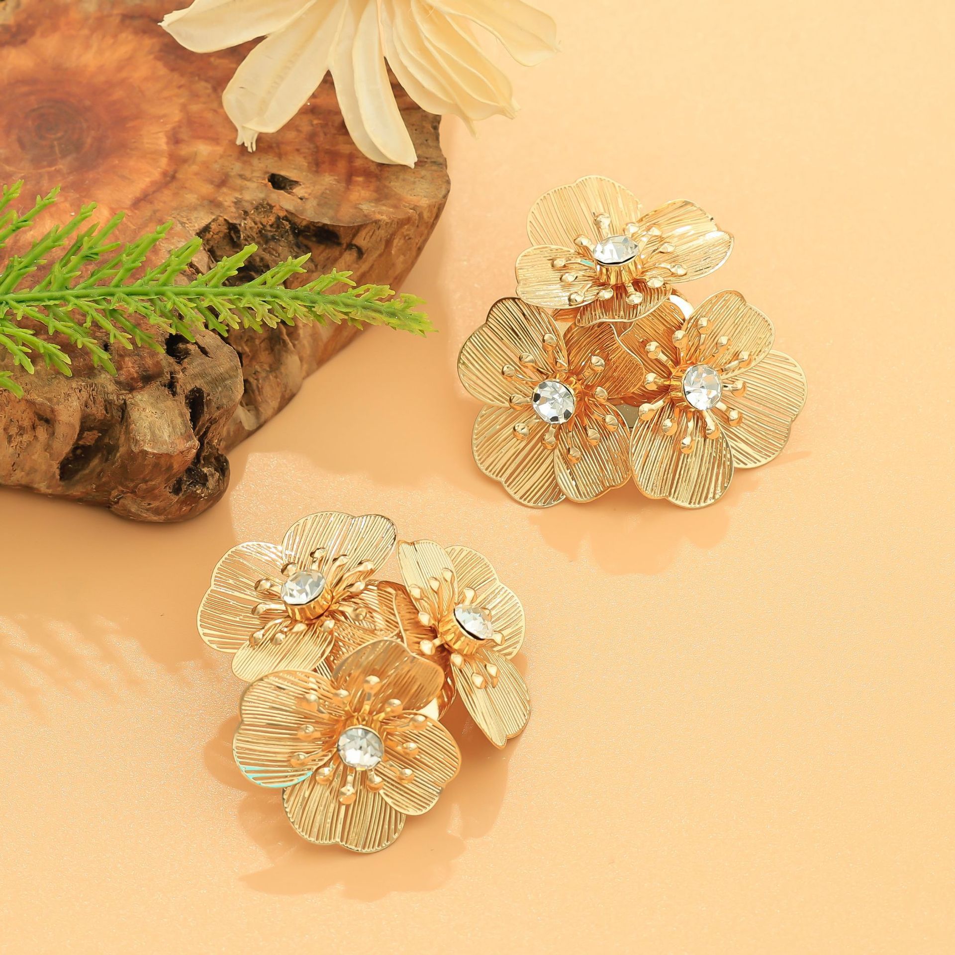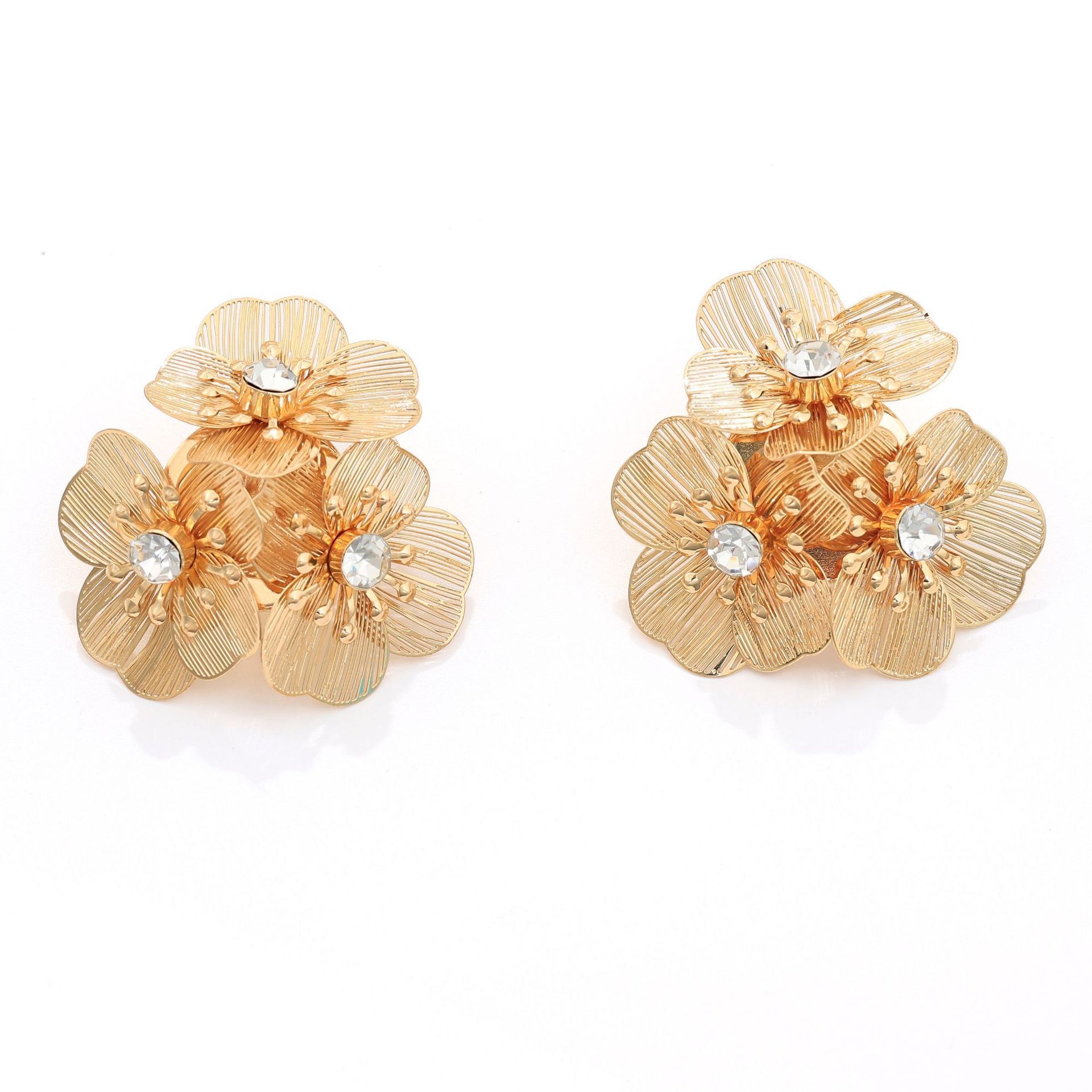 lega in zinco orecchini a borchia, Fiore, placcato color oro, per la donna & con strass, 37x37mm, Venduto da coppia