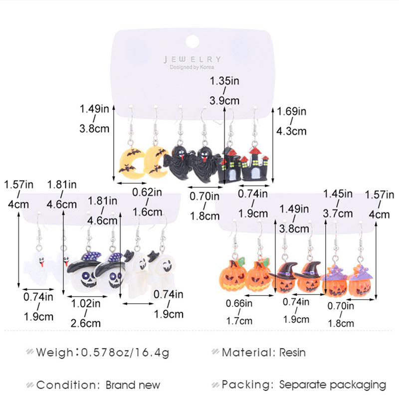 1:Pumpkin earring set2:Ghost Earring set3:Bat Castle Earring set