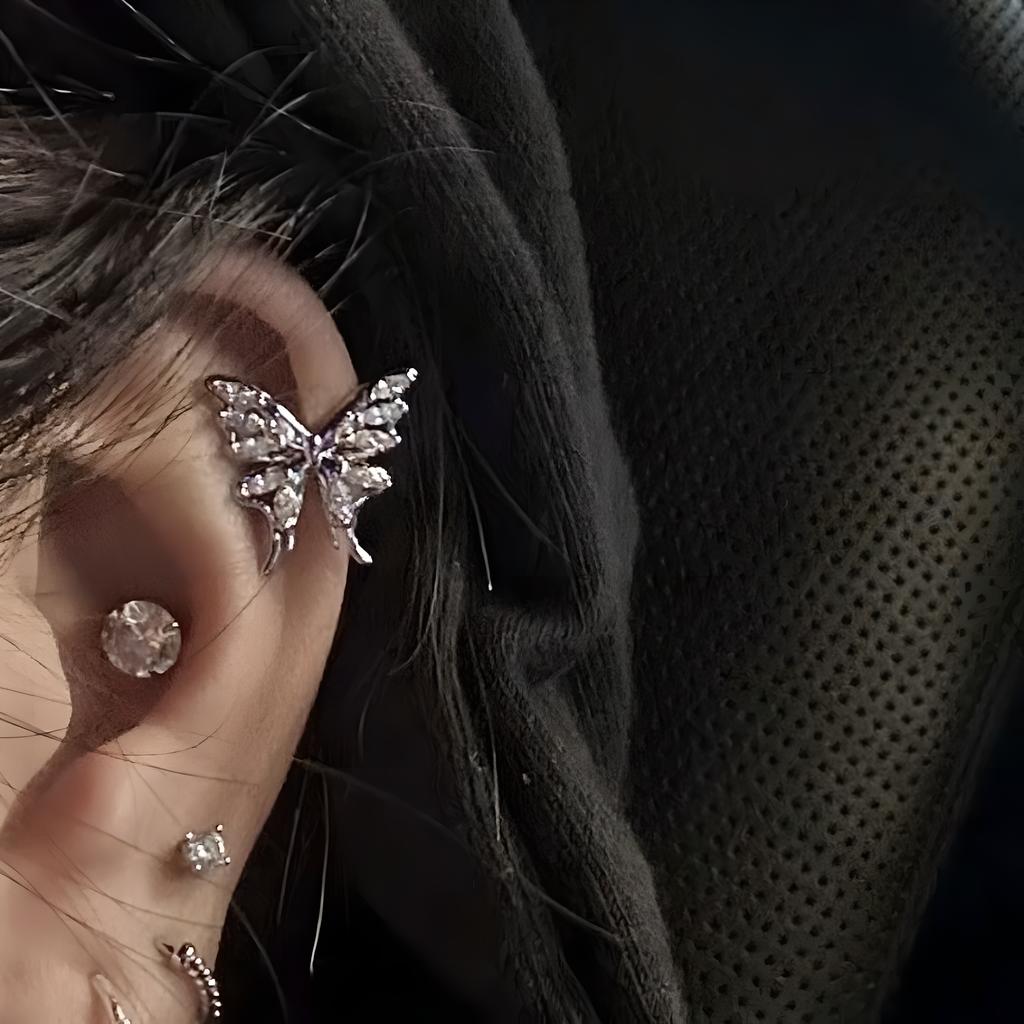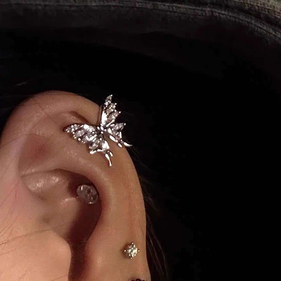 lega in zinco orecchino piercing, Farfalla, placcato, unisex & Micro spianare cubic zirconia, 8mm, Venduto da PC