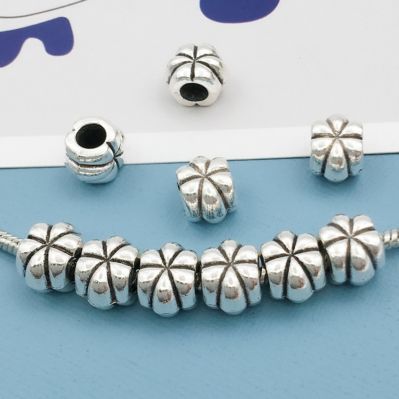 Perline in lega di zinco, lega in zinco, placcato color argento, DIY, argento, assenza di nichel,piombo&cadmio, 8x7.50mm, Foro:Appross. 1mm, Venduto da PC