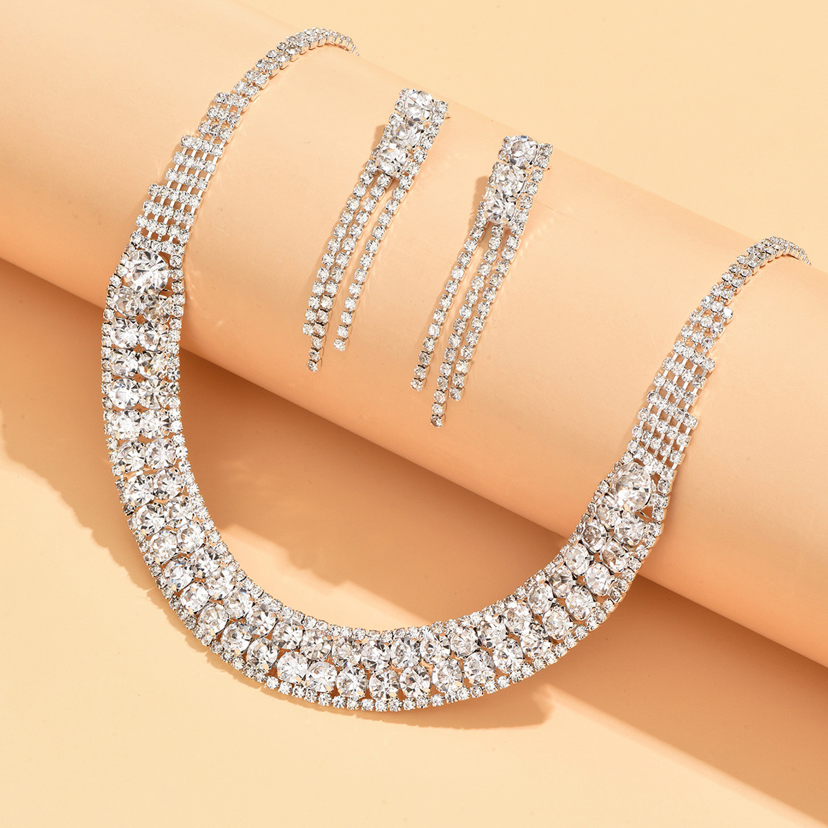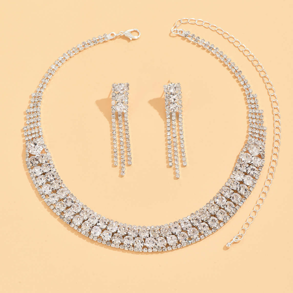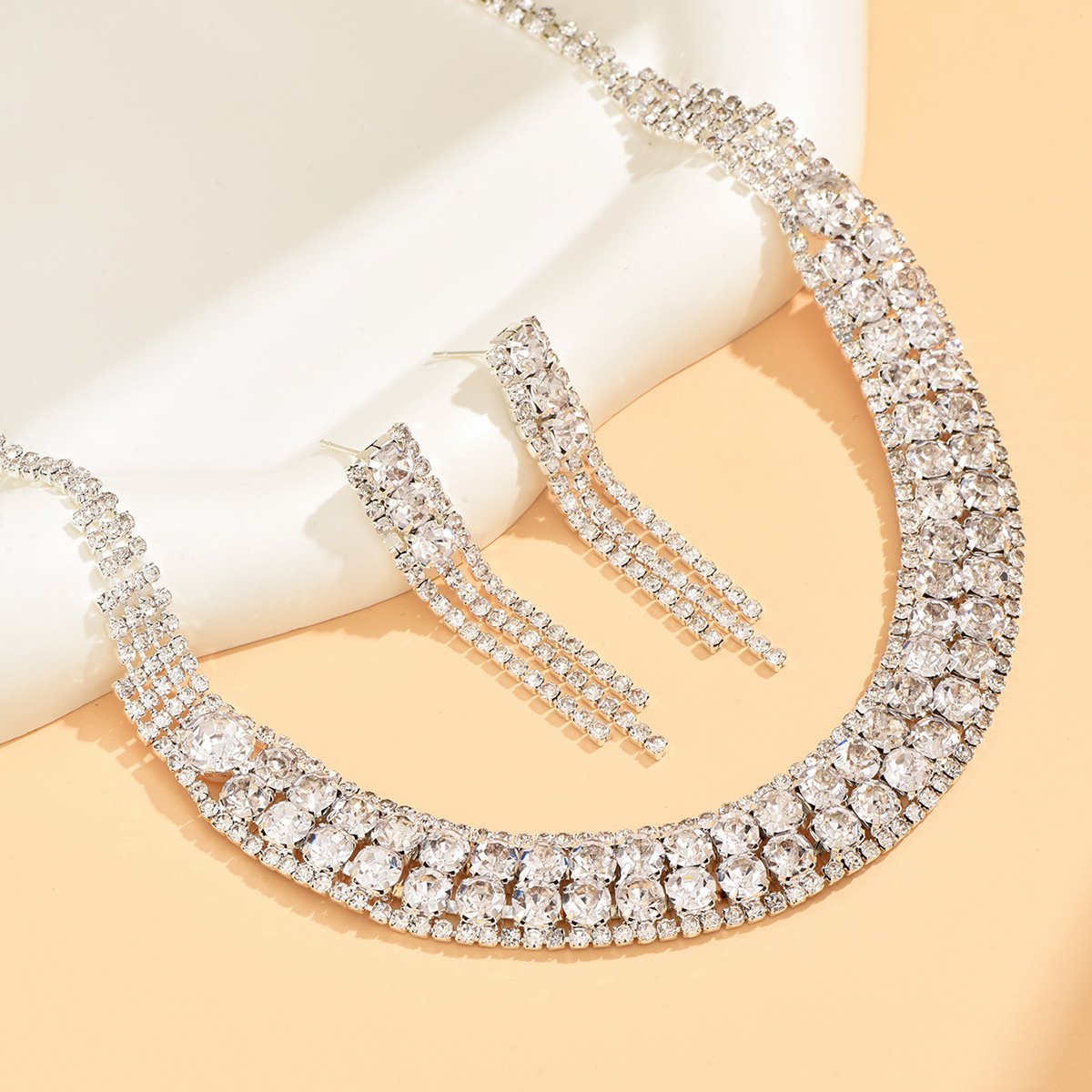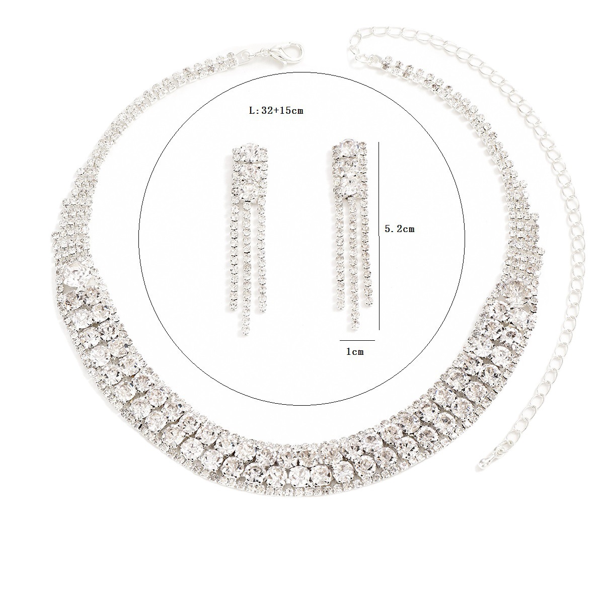 lega in zinco set di gioielli fashion, orecchino & Collana, placcato color argento, 2 pezzi & per la donna & con strass, Venduto da set