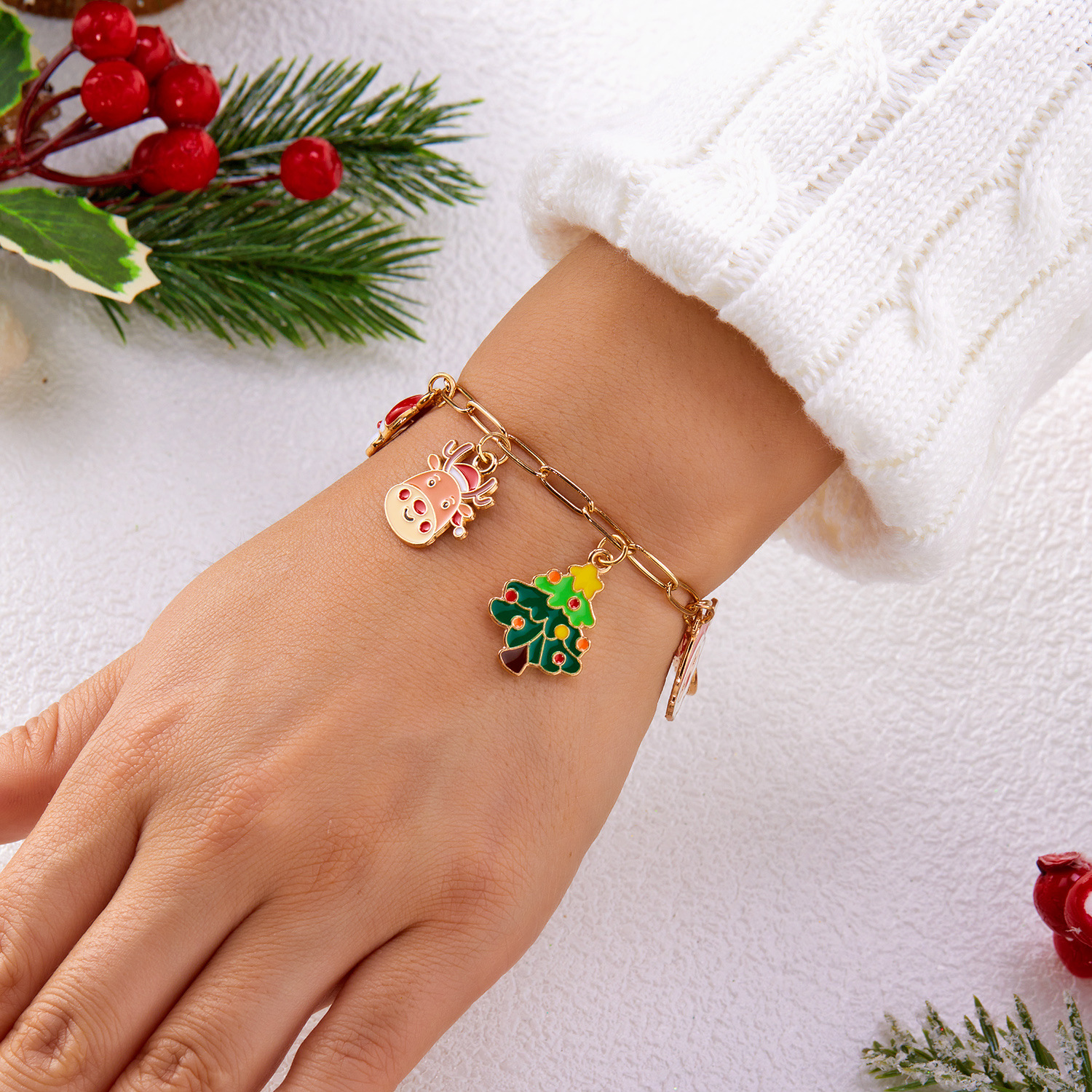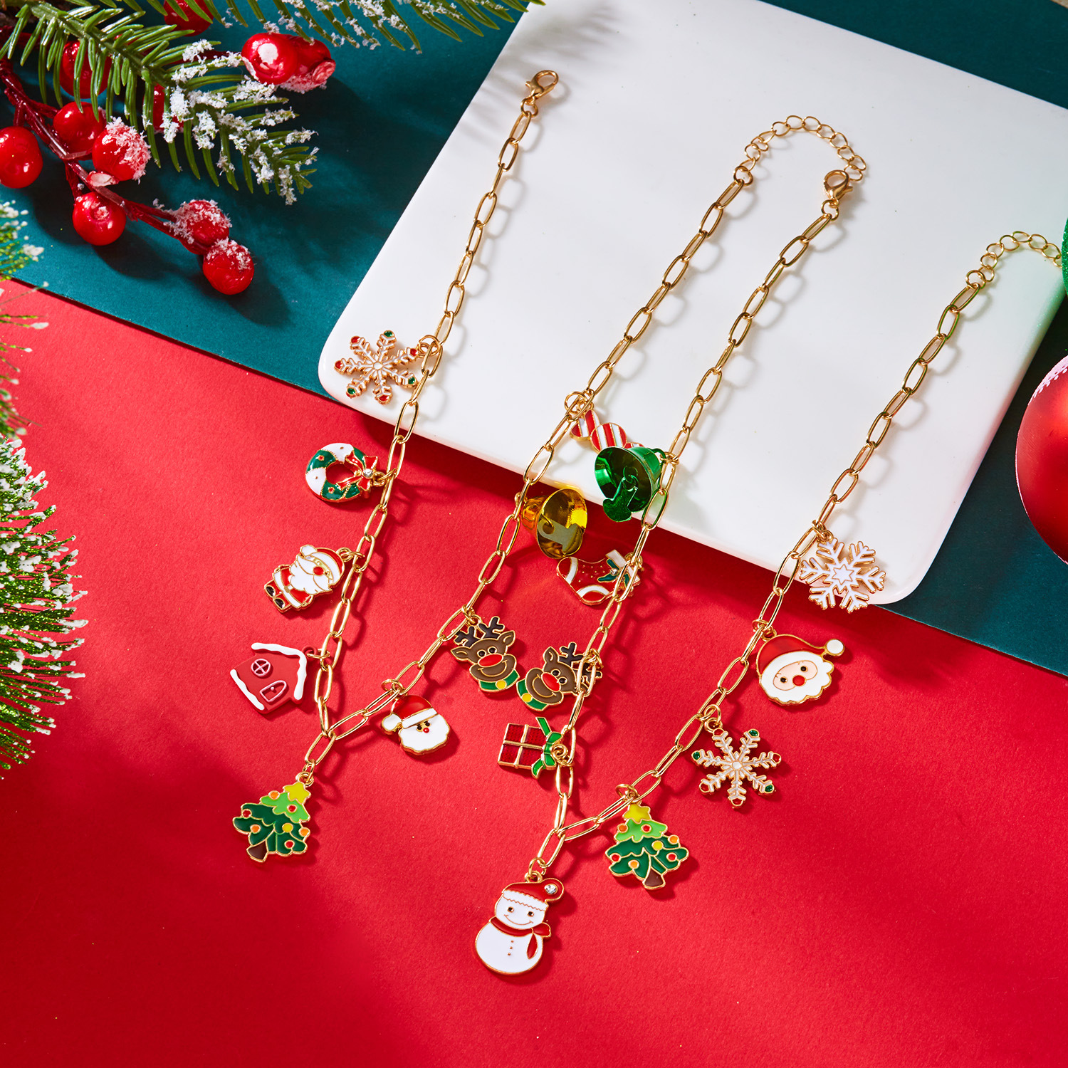 lega in zinco set di gioielli fashion, Bracciale & Collana, placcato color oro, Design natalizio & smalto, nessuno, Venduto da PC