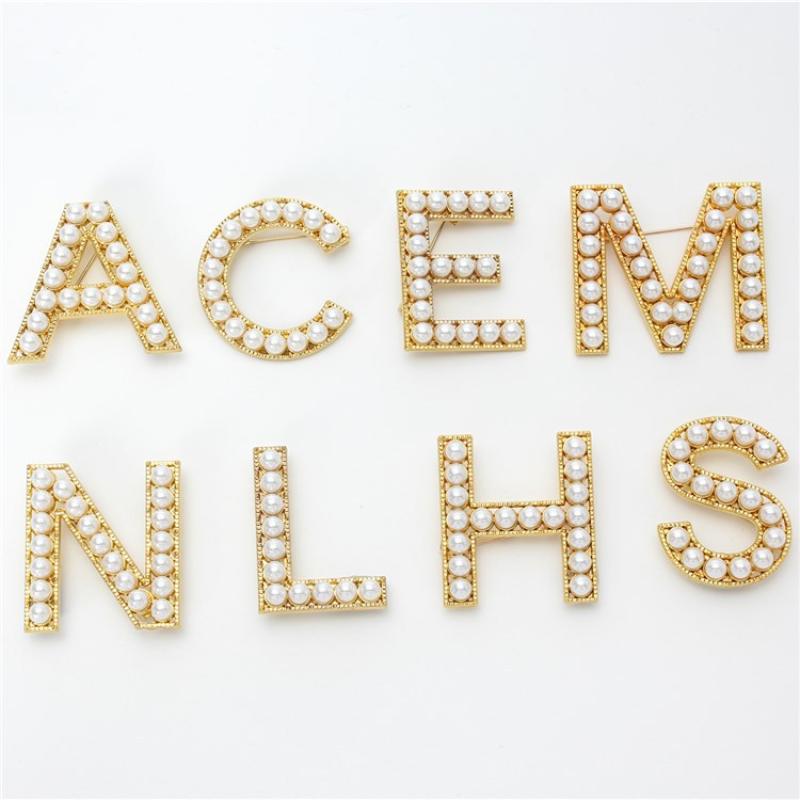 lega in zinco spilla, with perla in plastica, Lettera alfabeto, placcato color oro, stili diversi per la scelta & per la donna, brooch length 25-40mm, Venduto da PC