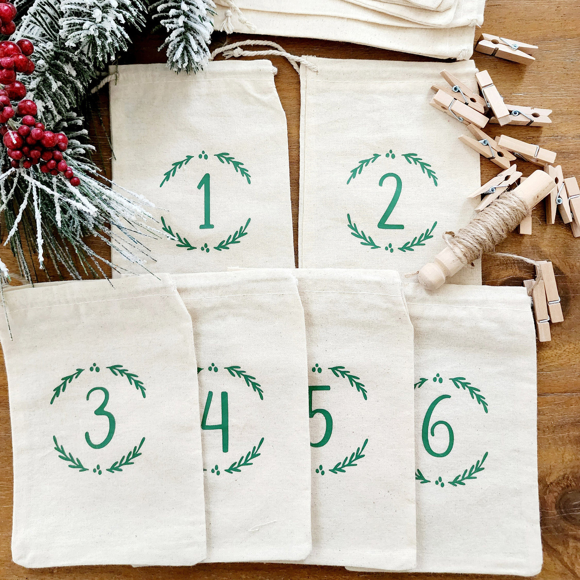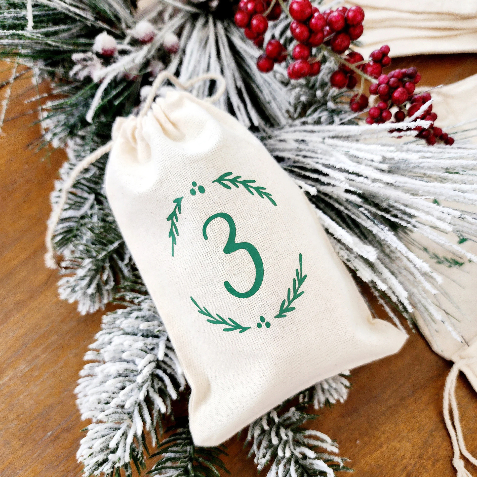 lino Borsa coulisse, Rettangolo, Design natalizio & con il modello del numero, 100x150mm, 25PC/set, Venduto da set