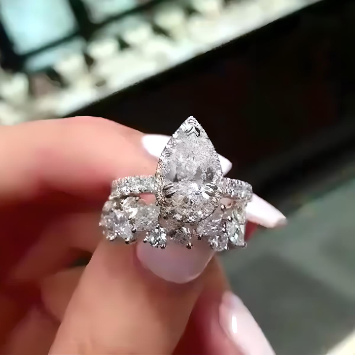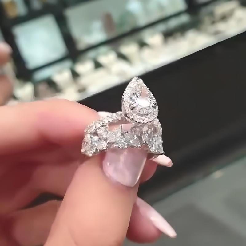 ottone anello, Lacrima, placcato platino, formato differente per scelta & Micro spianare cubic zirconia & per la donna, Misura:6-10, Venduto da PC