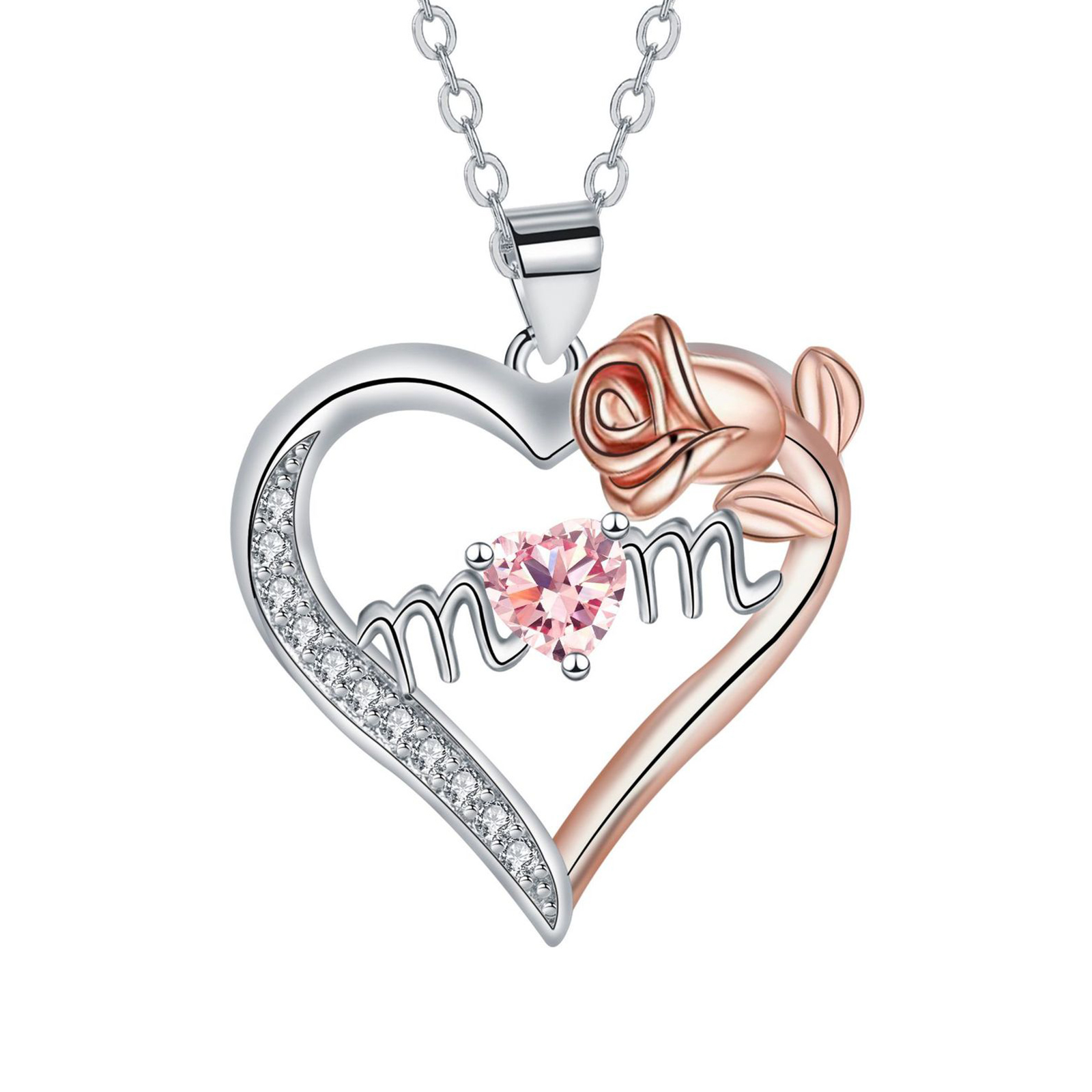 ottone collana, with 5cm extender chain, Cuore, placcato, Gioielli Festa della Mamma & Micro spianare cubic zirconia & per la donna, nessuno, Lunghezza Appross. 45 cm, Venduto da PC