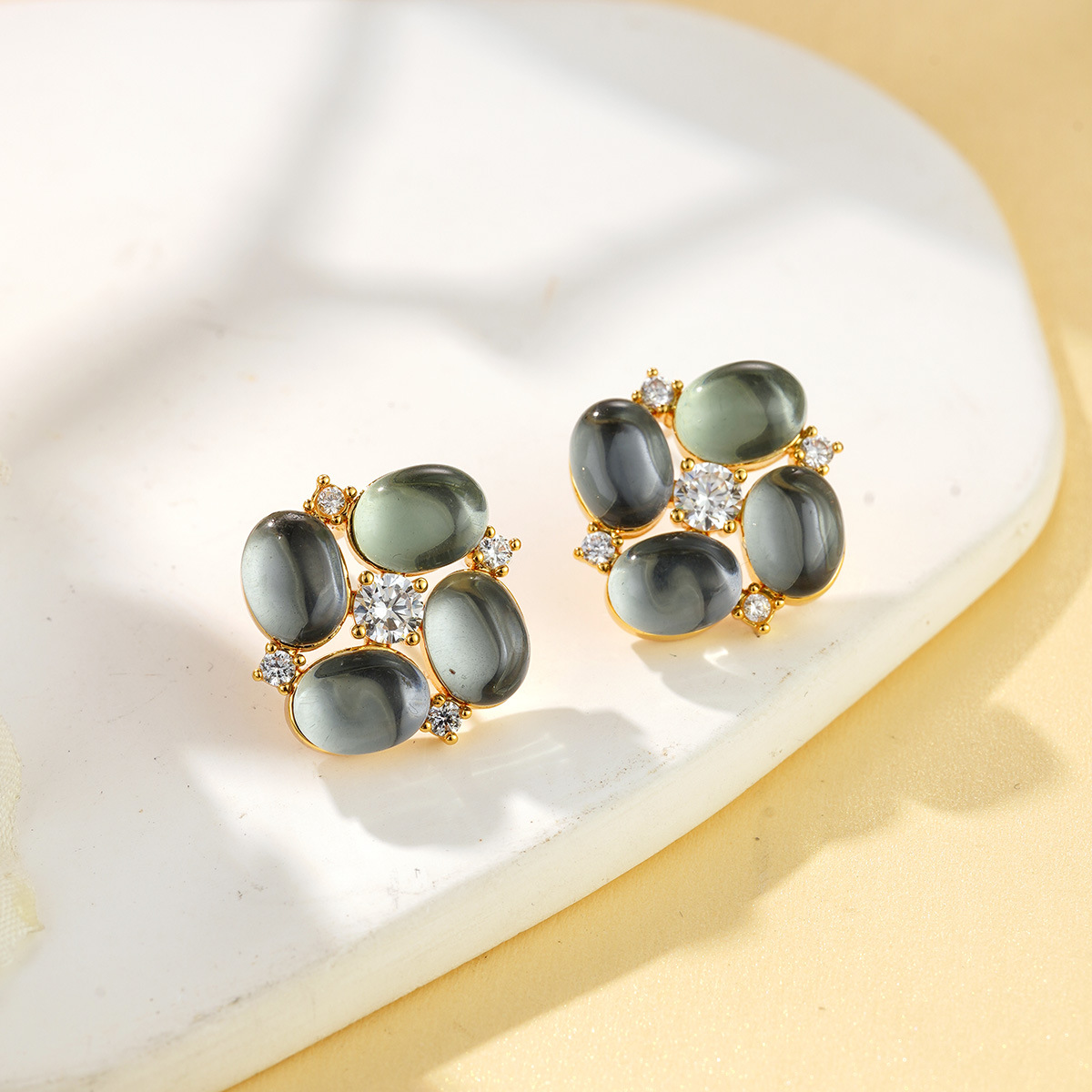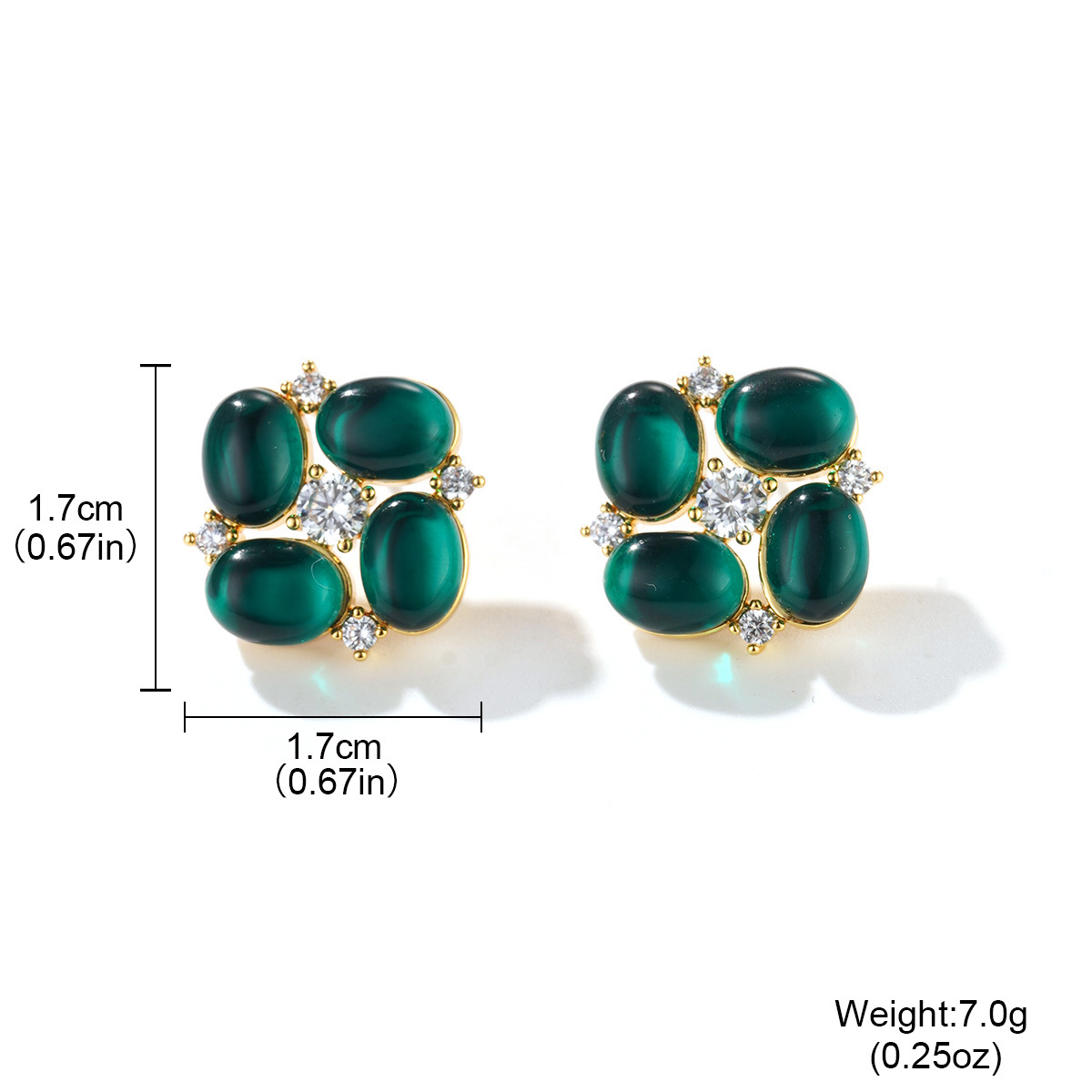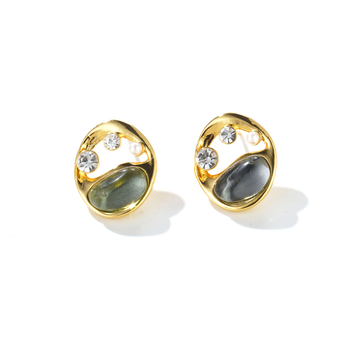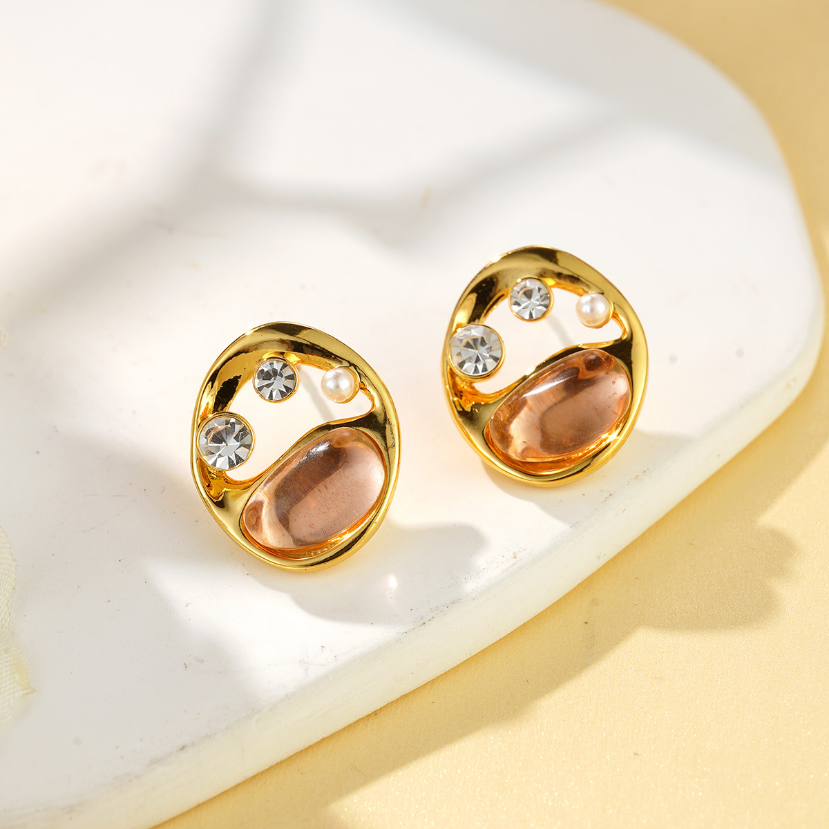 ottone orecchini a borchia, with vetro, placcato color oro, gioielli di moda & Micro spianare cubic zirconia, nessuno, Venduto da coppia