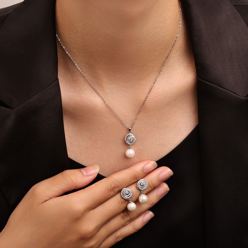 ottone set di gioielli fashion, orecchino & Collana, with perla in plastica, placcato, 2 pezzi & per la donna & con strass, nessuno, Venduto da set