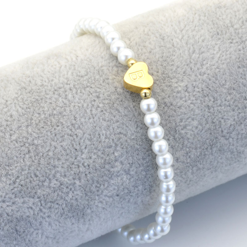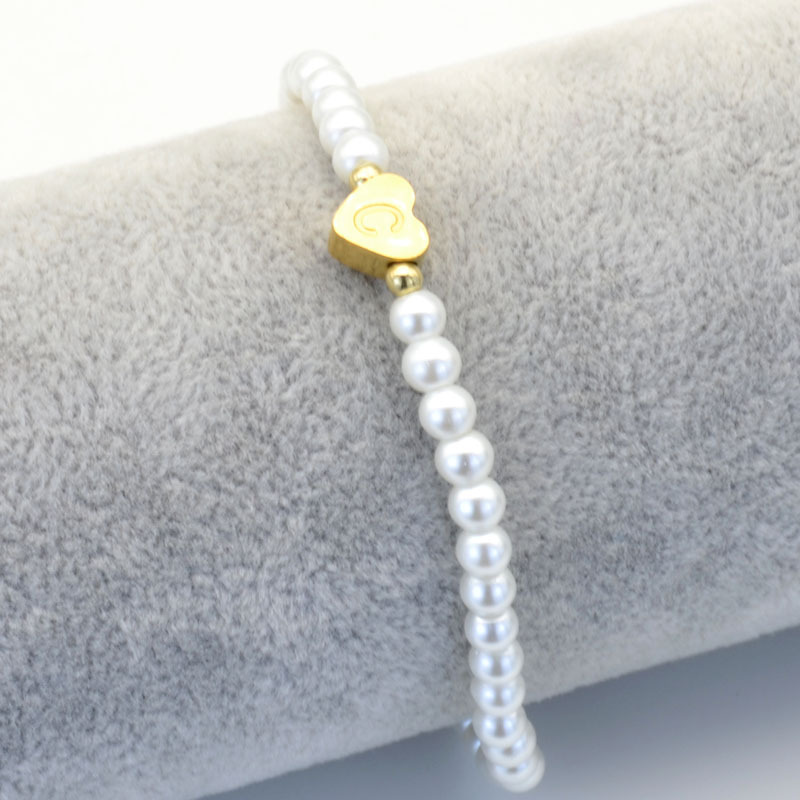 perla in plastica braccialetto, with 304 acciaio inox, Cuore, placcato color oro, unisex & diversi modelli per la scelta & con modello lettera, Lunghezza Appross. 6-7 pollice, Venduto da PC