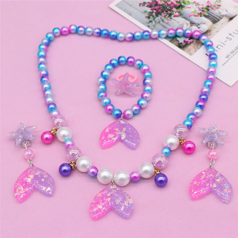 plastica Set gioielli bambini, with vestito, Coda di sirena, Ragazza & stili diversi per la scelta, hair clip length 5cm, necklace length 45cm, bracelet length 15cm, Venduto da set