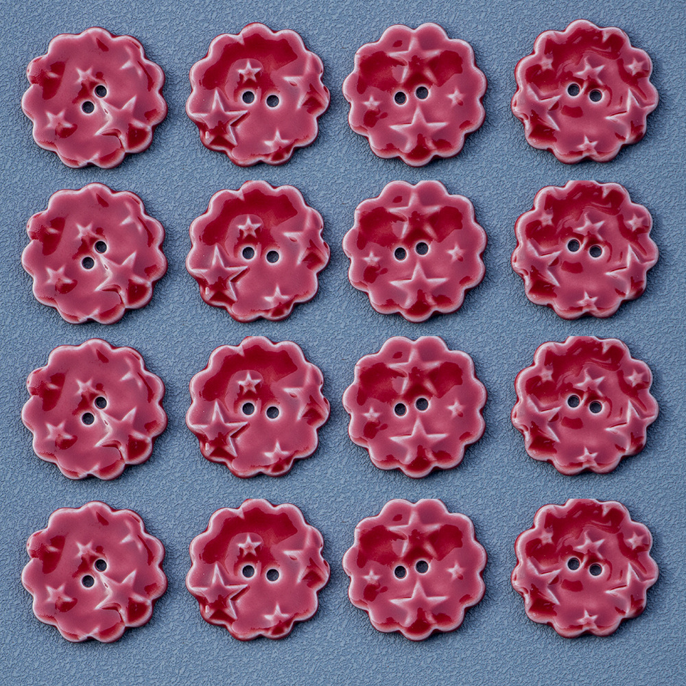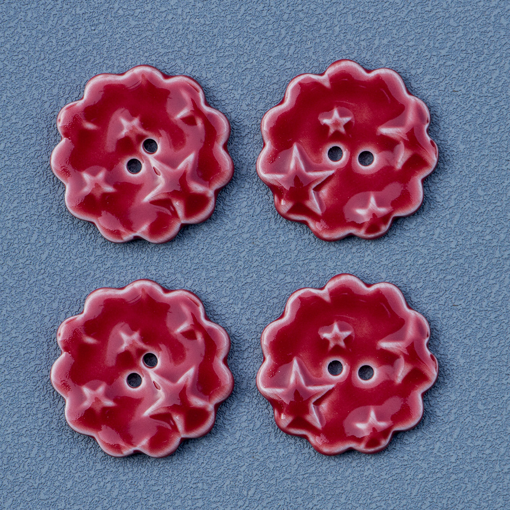 porcellana bottone a 3 fori, Fiore, DIY, rosso, 10PC/borsa, Venduto da borsa