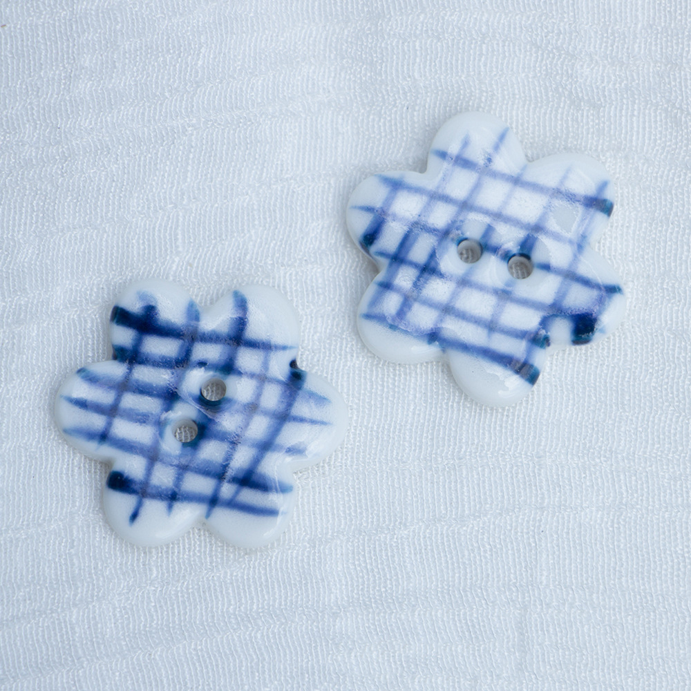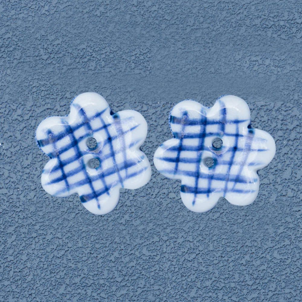 porcellana bottone a 3 fori, Fiore, DIY, blu, 20mm, 10PC/borsa, Venduto da borsa