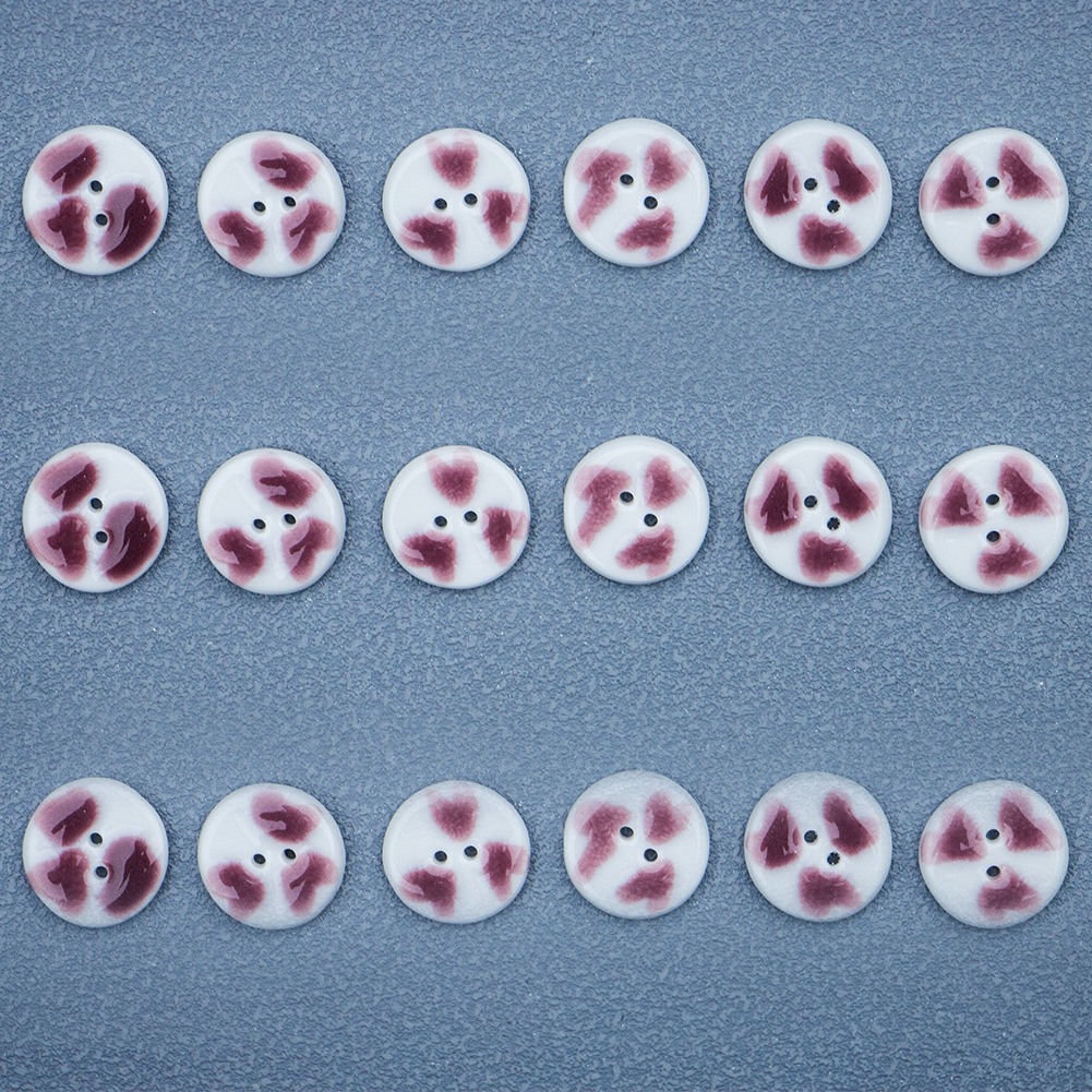 porcellana bottone a 3 fori, DIY, viola, 16mm, 10PC/borsa, Venduto da borsa