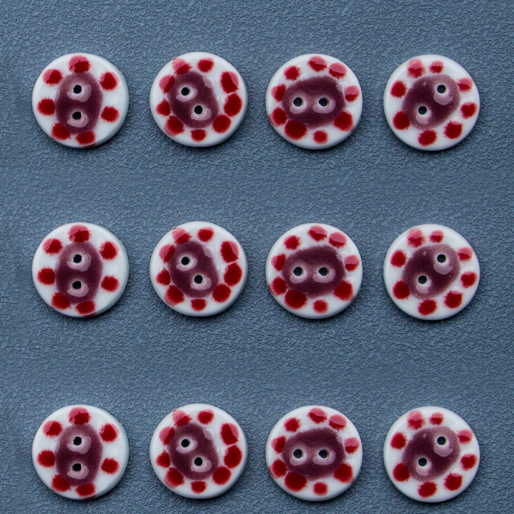 porcellana bottone a 3 fori, DIY, rosso, 19.50mm, 10PC/borsa, Venduto da borsa