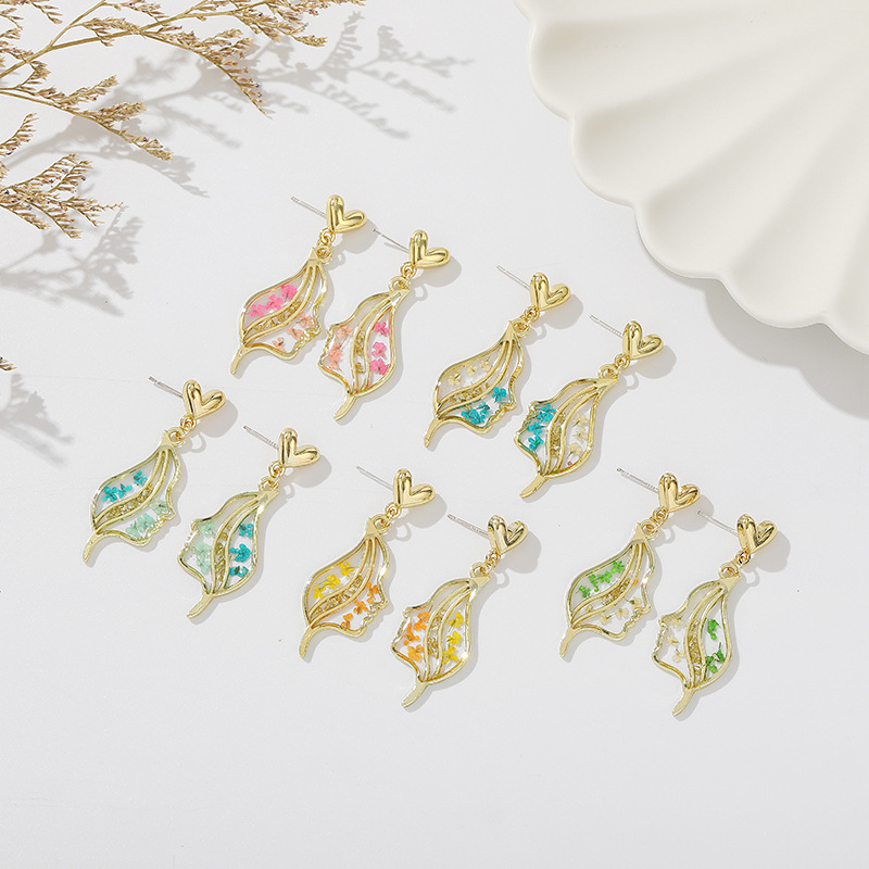 resina orecchini a goccia, with Fiori secchi & lega in zinco, Faccia, adesivo epossidico, gioielli di moda & per la donna, nessuno, earring length 30-40mm, Venduto da coppia
