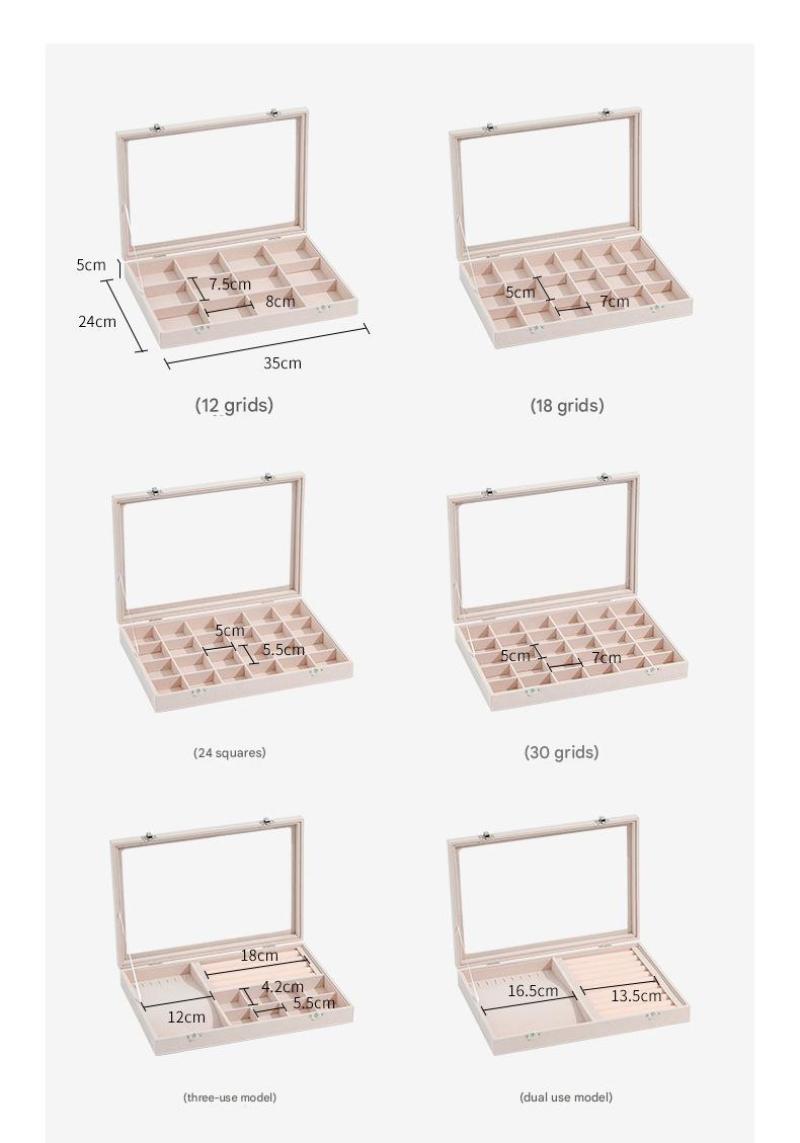 1:[Space box] Beige2:[12-grid box] Beige3:[18-grid box] Beige4:[24-grid box] Beige5:[30-grid box] Beige6:[Ring box] Beige7:[Hundred ring box] Beige8:[Necklace box] Beige9:[Ear stud box] Beige10:[Earring box] Beige11:[Dual-use box] Beige12:[Three-purpose box] beige