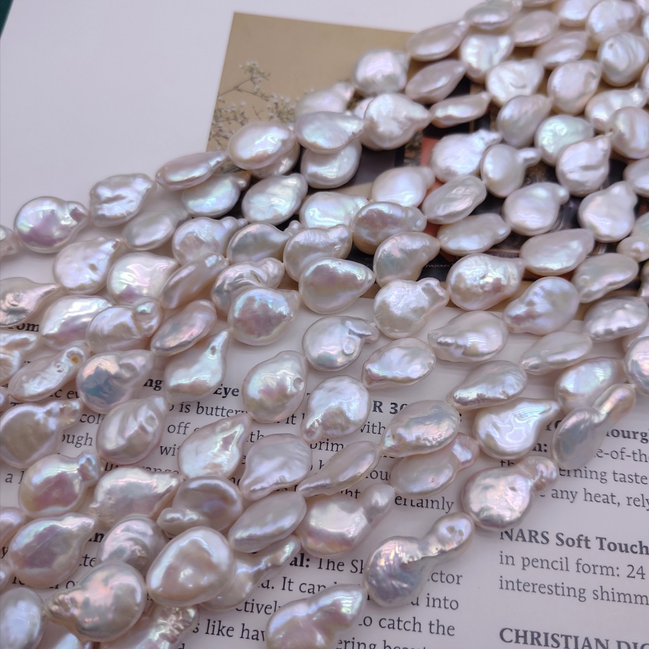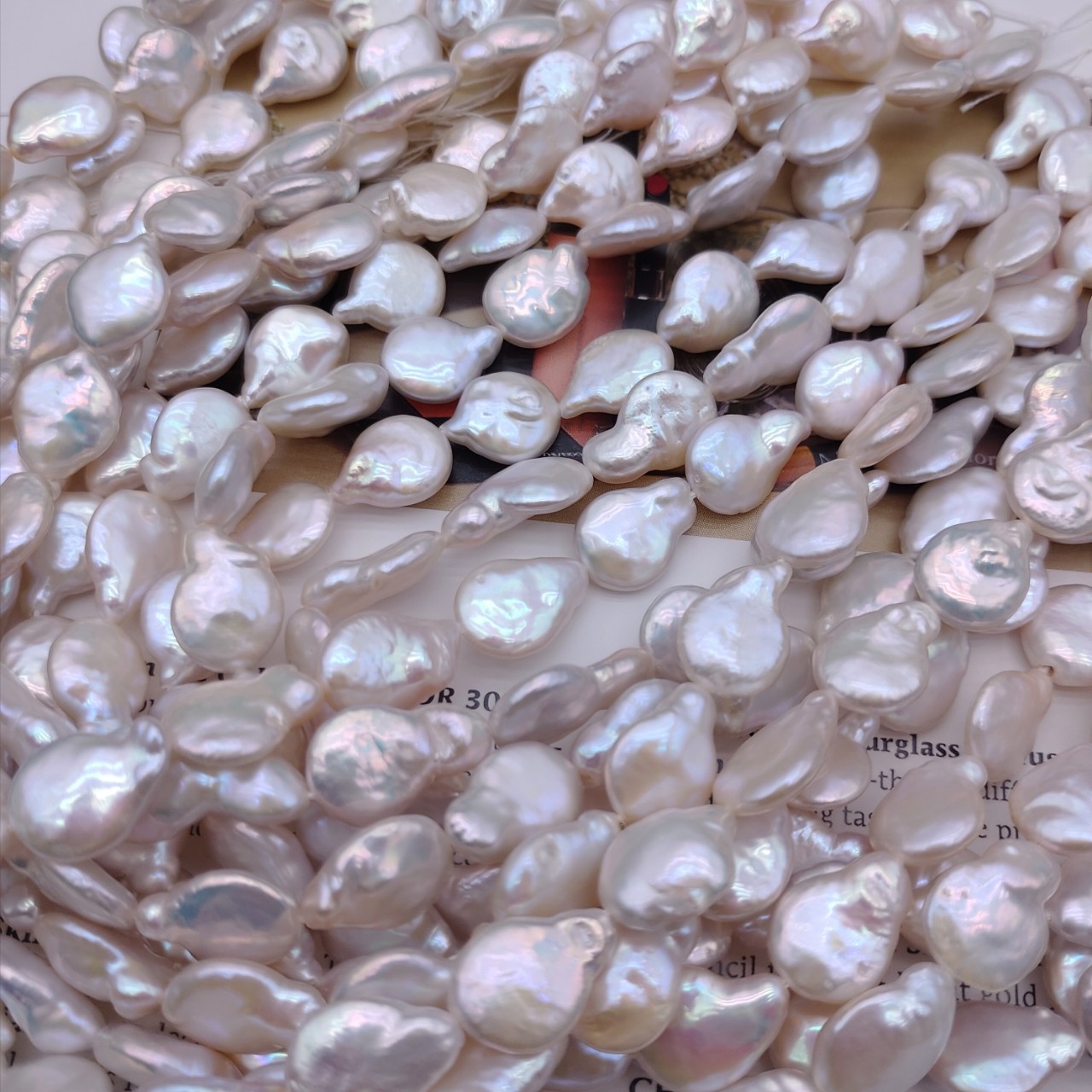 淡水養殖のバロックパール, 天然有核フレッシュウォーターパール, DIY, ホワイト, 13x20mm-15x25mm, で販売される 38 センチ ストランド