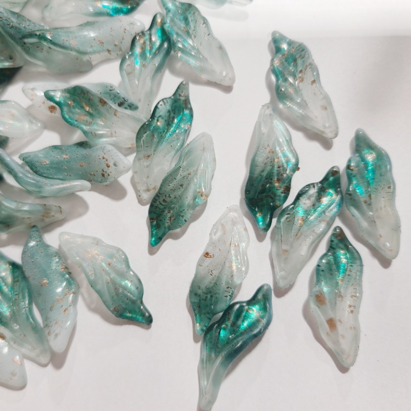 ヘアアクセサリーDIY調査結果, ランプワーク, 葉っぱ, 焼きつけニス, ランダムに送信, ミックスカラー, 14x37mm, 売り手 パソコン