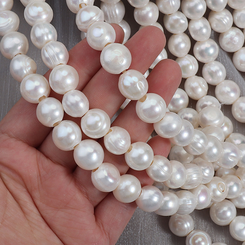 天然淡水真珠ルース ビーズ, 天然有核フレッシュウォーターパール, DIY, beads size 11-12mm, 穴:約 3mm, 約 30パソコン/ストランド, 売り手 ストランド