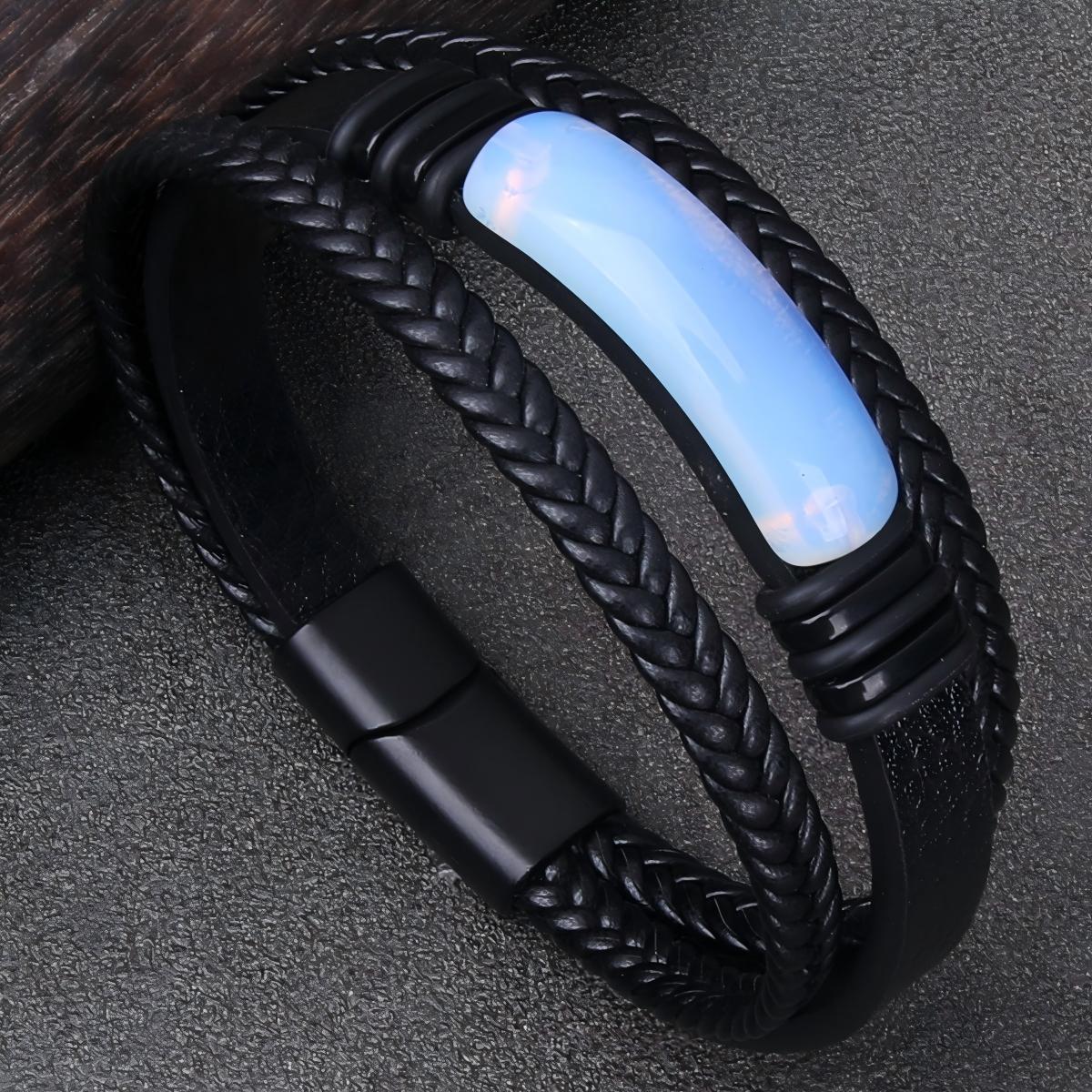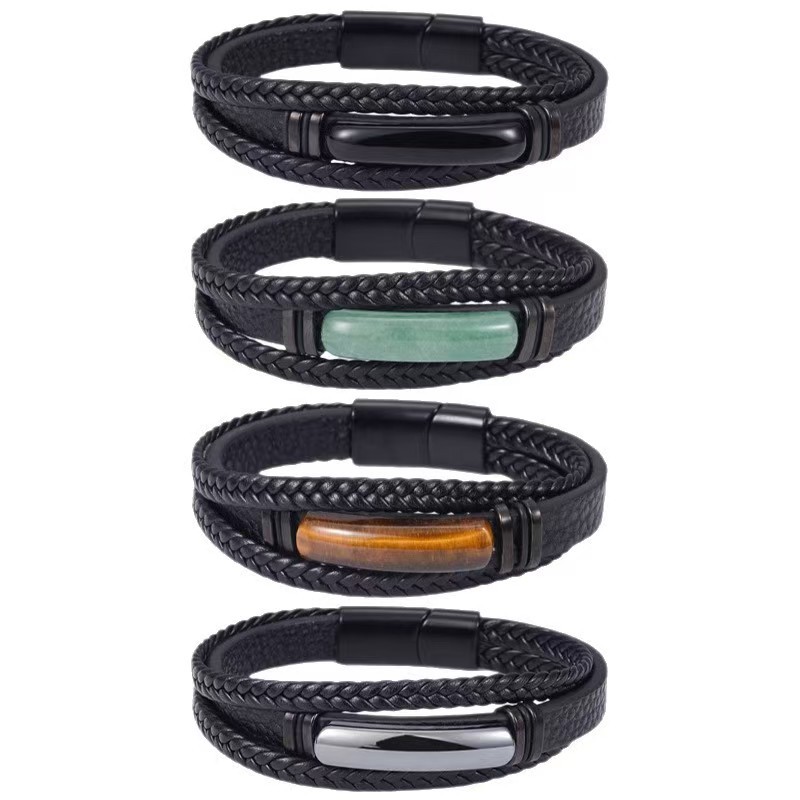 PUコードブレスレット, PU革(ポリ塩化ビニール、ポリウレタン), とともに 201 ステンレス鋼, ハンドメイド, 3つの層 & ファッションジュエリー & 男性用, 無色, 売り手 パソコン