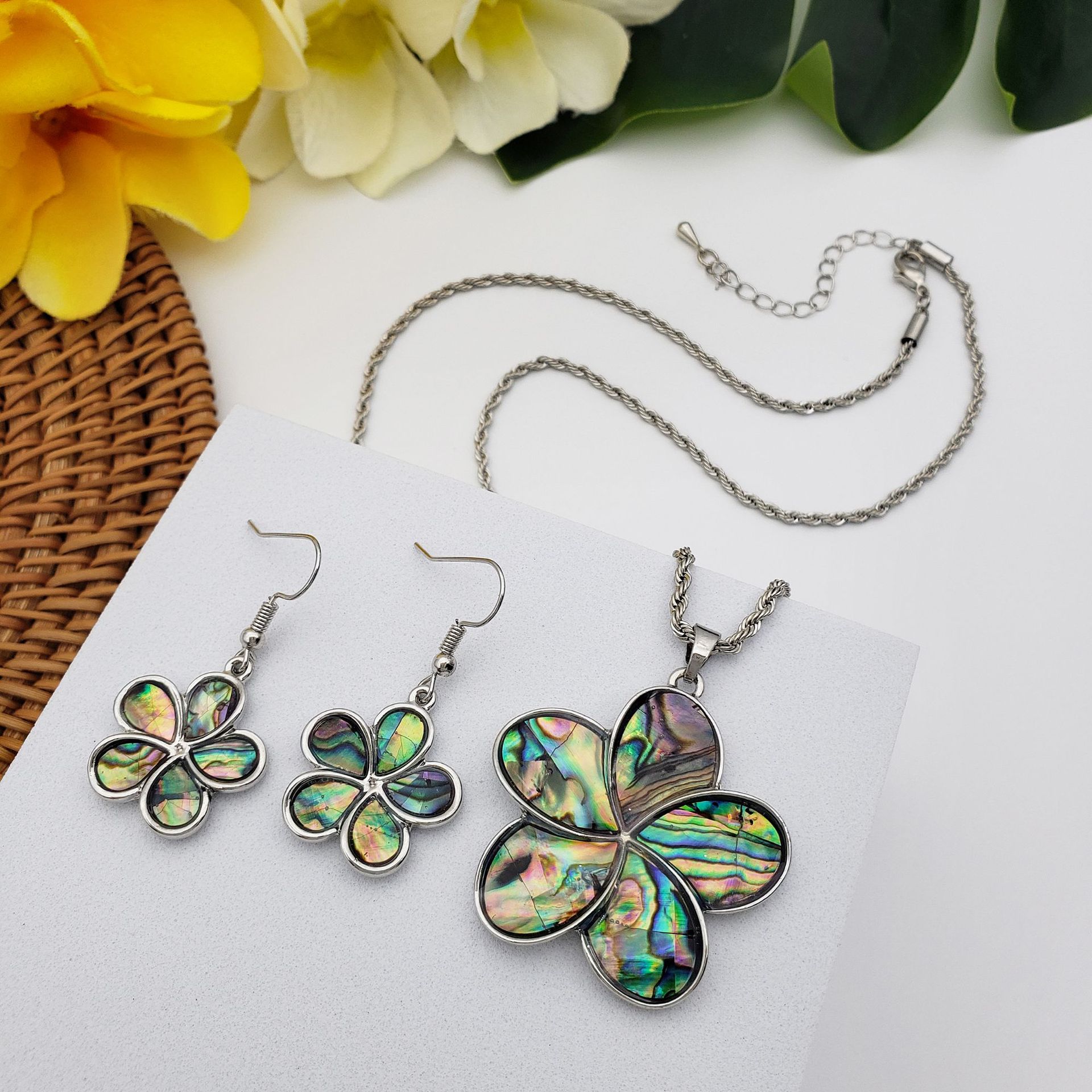 アワビ貝 ファッションアクセサリーセット, セーターのチェーンネックレス & イヤリング, とともに 鉄チェーン & 亜鉛合金, 花形, メッキ, 2個 & ファッションジュエリー & 女性用, 無色, 売り手 セット