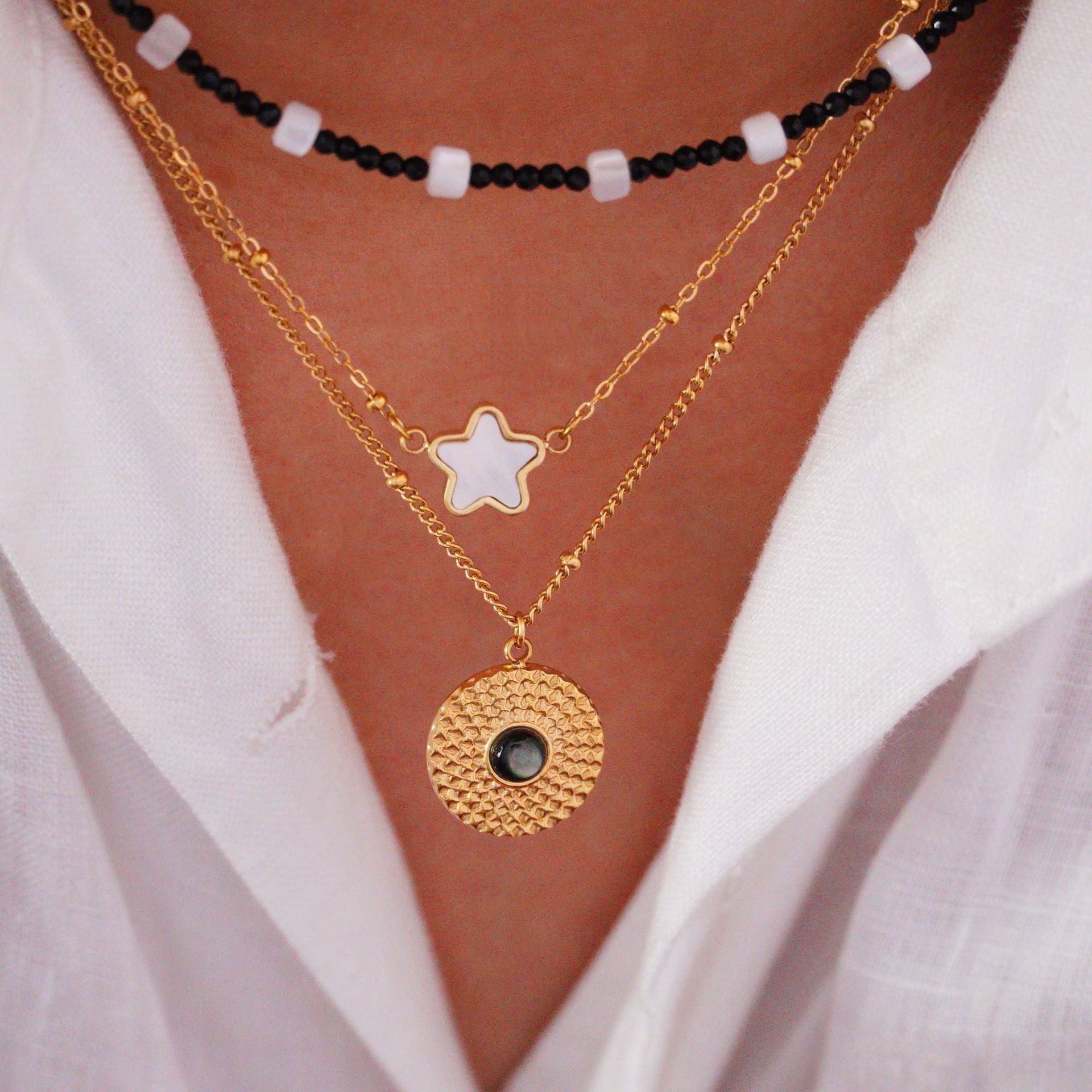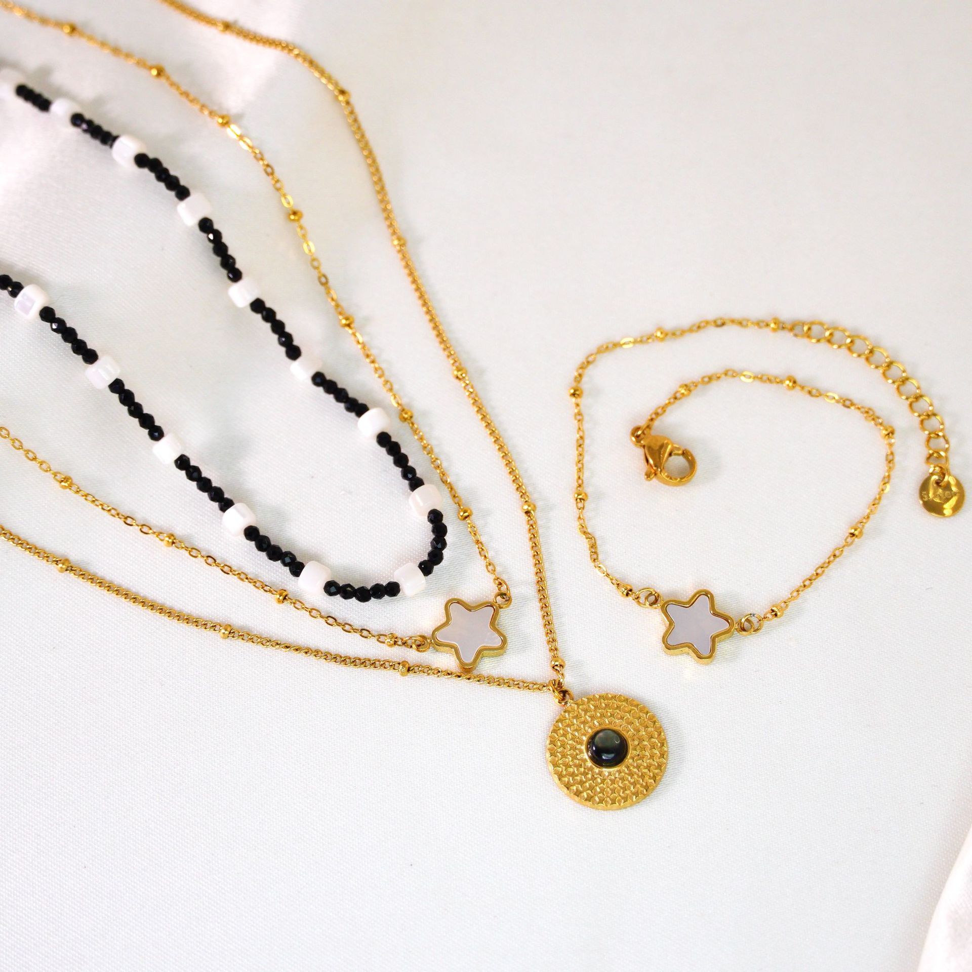 1:Handmade beads necklace 16-18inch2:Black shell hammer pattern necklace 16-18inch3:White shell five-pointed star necklace 16-18inch4:White shell five-pointed star bracelet 6-8inch