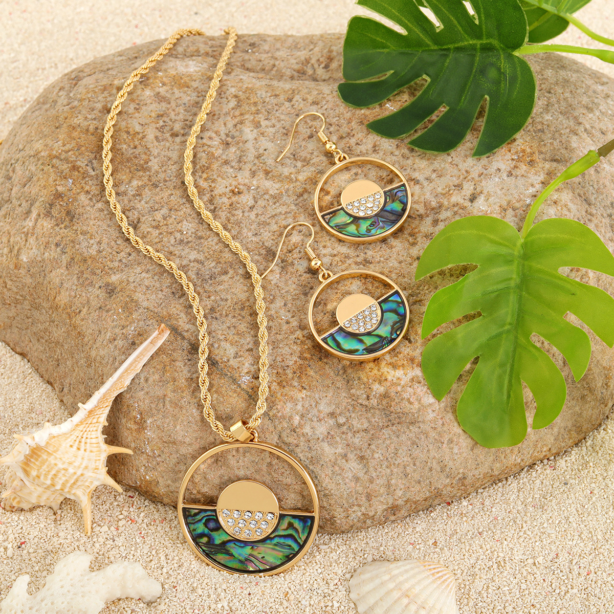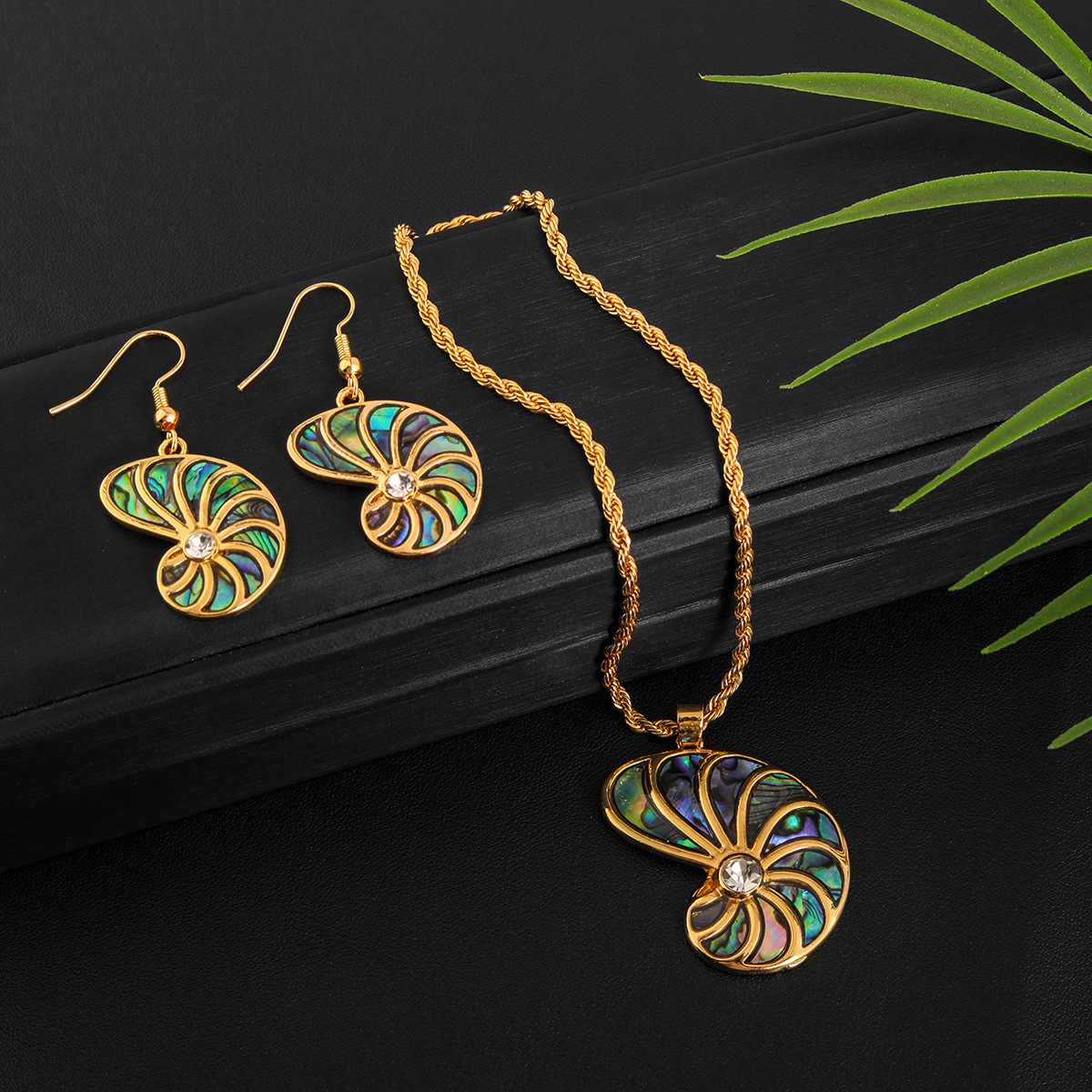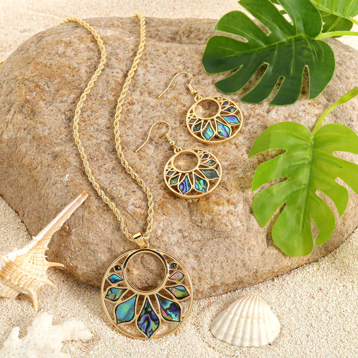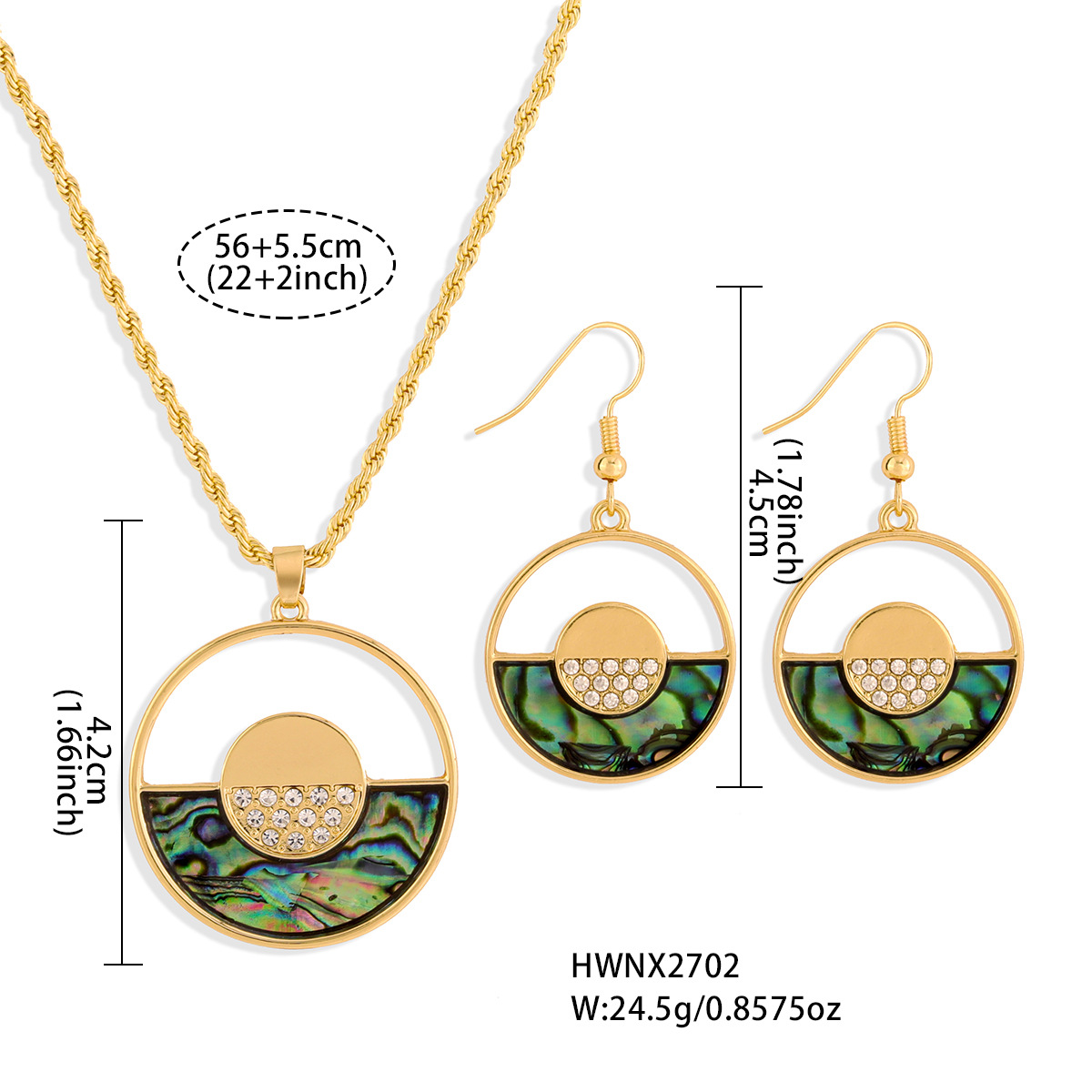 亜鉛合金 ファッションアクセサリーセット, イヤリング & ネックレス, とともに 鉄チェーン & アワビ貝, メッキ, 2個 & 異なるスタイルを選択 & 女性用, 金色, 売り手 セット