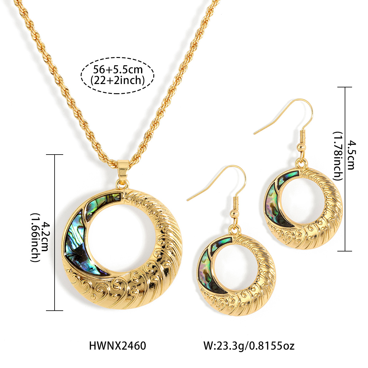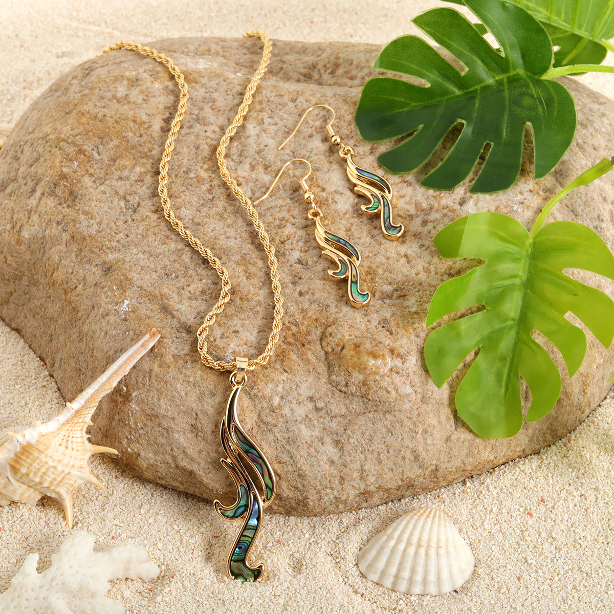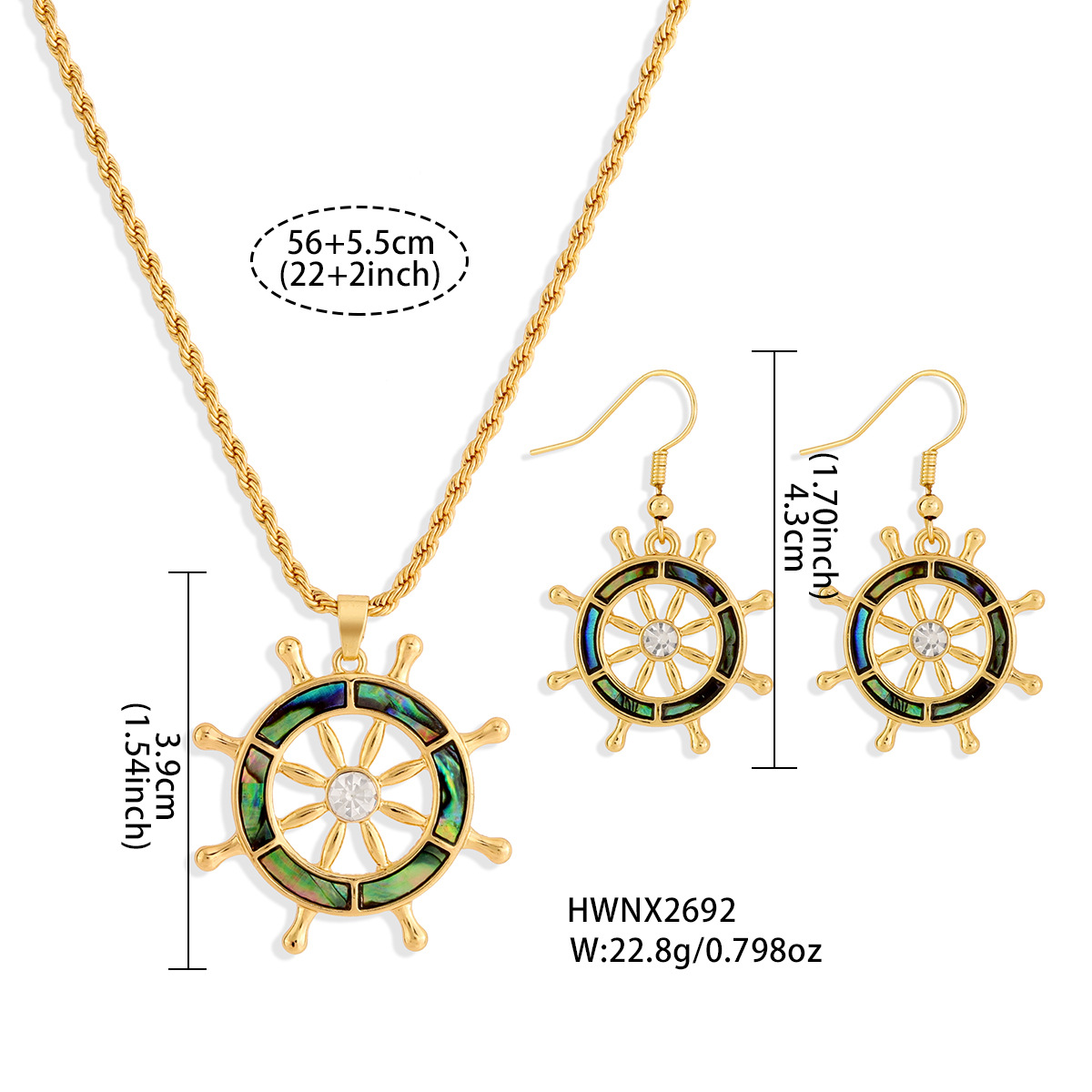 亜鉛合金 ファッションアクセサリーセット, イヤリング & ネックレス, とともに 鉄チェーン & アワビ貝, メッキ, 2個 & 異なるスタイルを選択 & 女性用, 金色, 売り手 セット