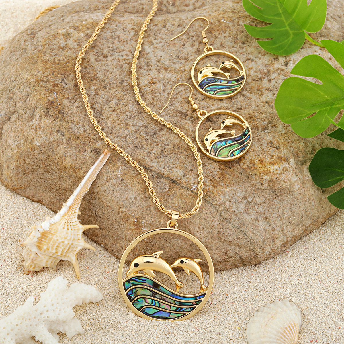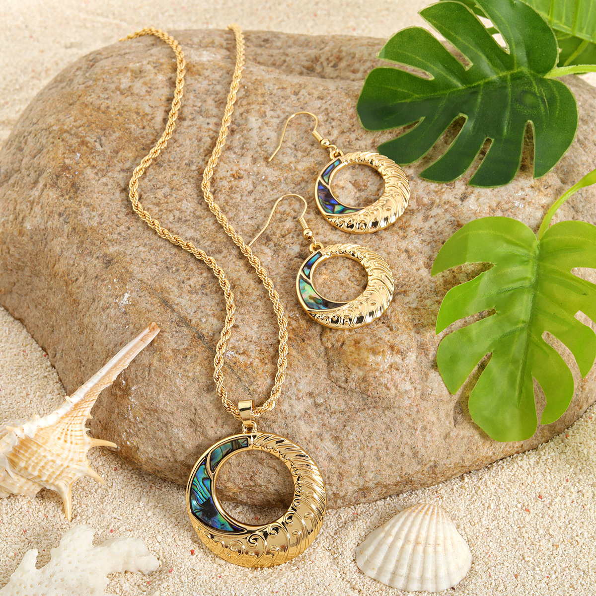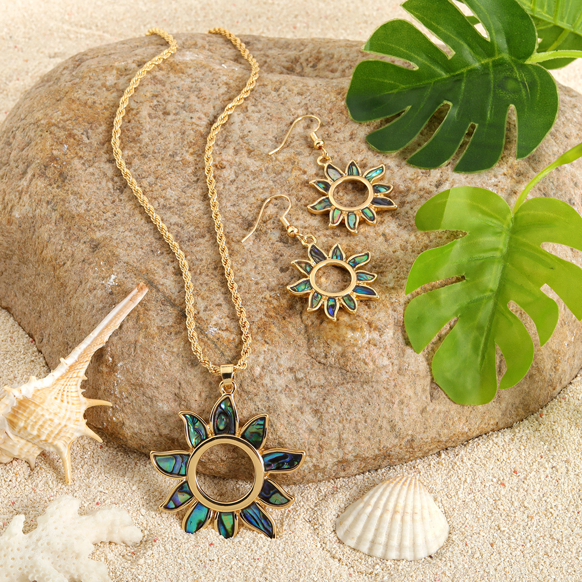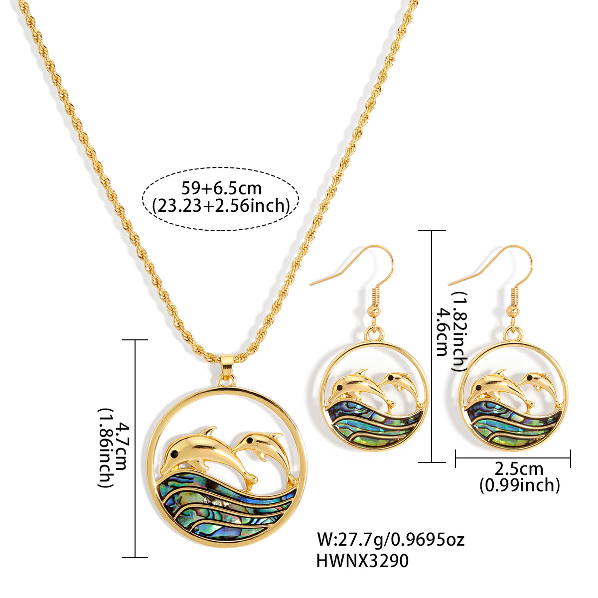 亜鉛合金 ファッションアクセサリーセット, イヤリング & ネックレス, とともに 鉄チェーン & アワビ貝, メッキ, 2個 & 異なるスタイルを選択 & 女性用, 金色, 売り手 セット