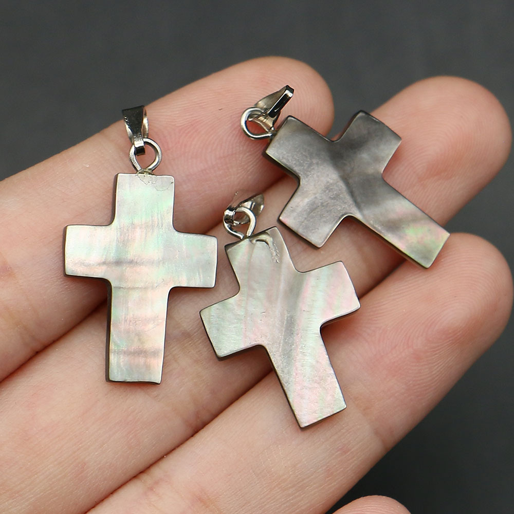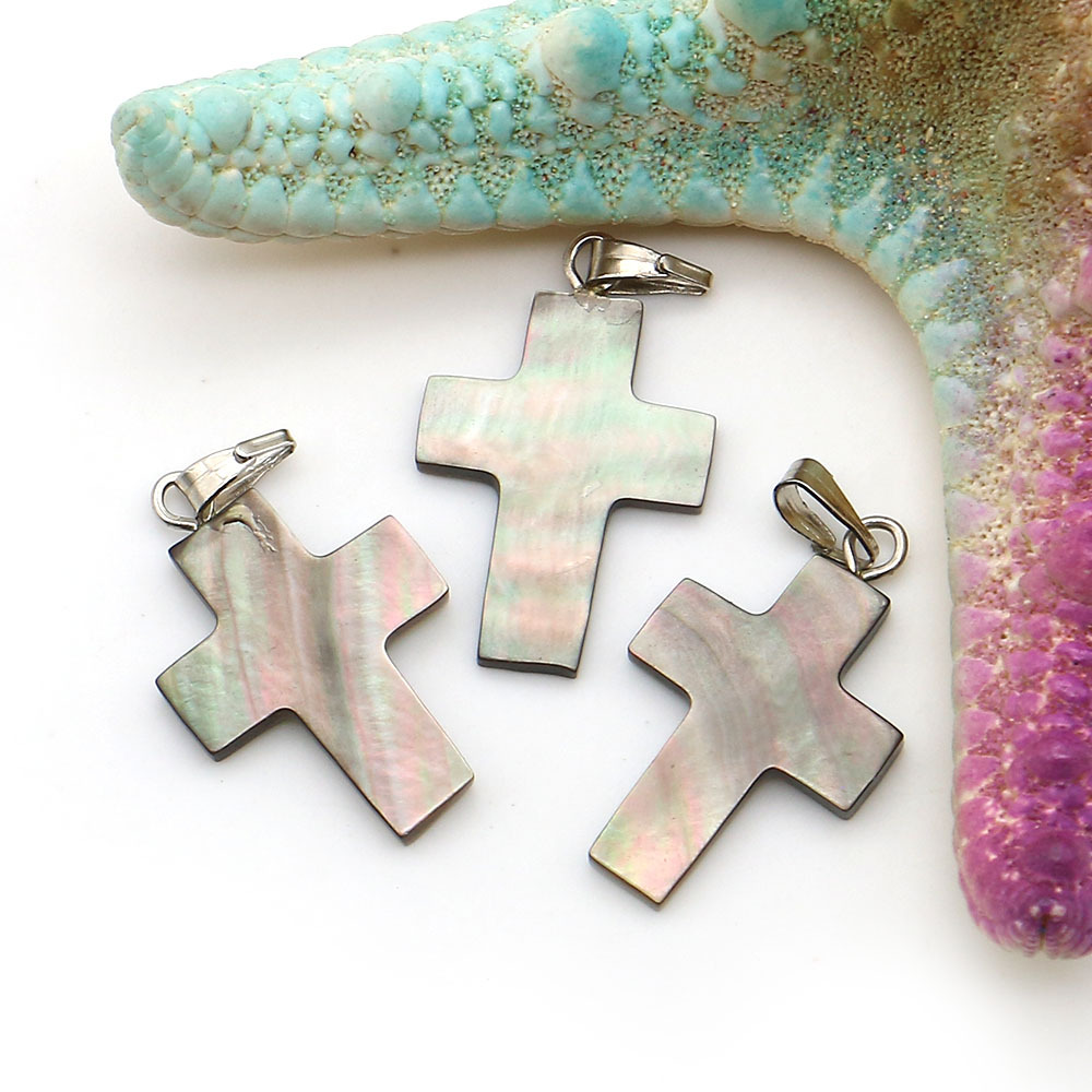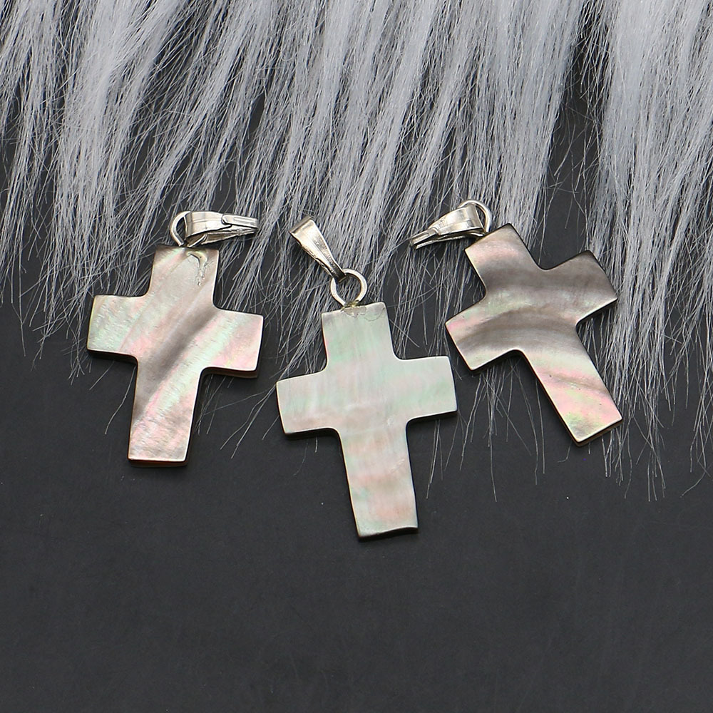 シェルペンダント, ブラック+リップ+シェル, とともに ワックスコード & 鉄, クロス, DIY, ミックスカラー, 14x24mm, 売り手 パソコン