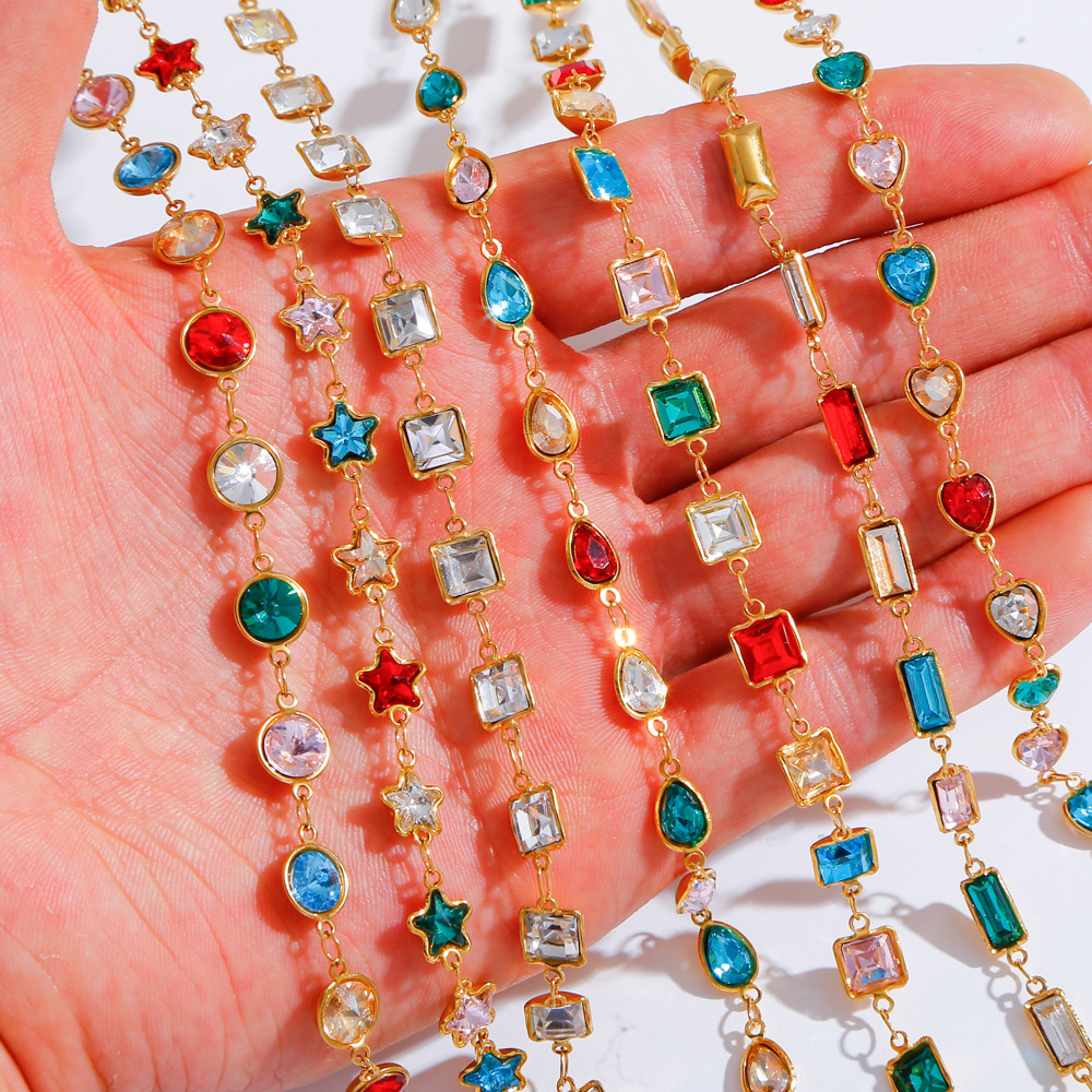 ステンレススチールジュエリーチェーン, 304ステンレススチール, ゴールドメッキ, DIY & マイクロパヴェジルコニア, 無色, 100x100x10mm, 売り手 M